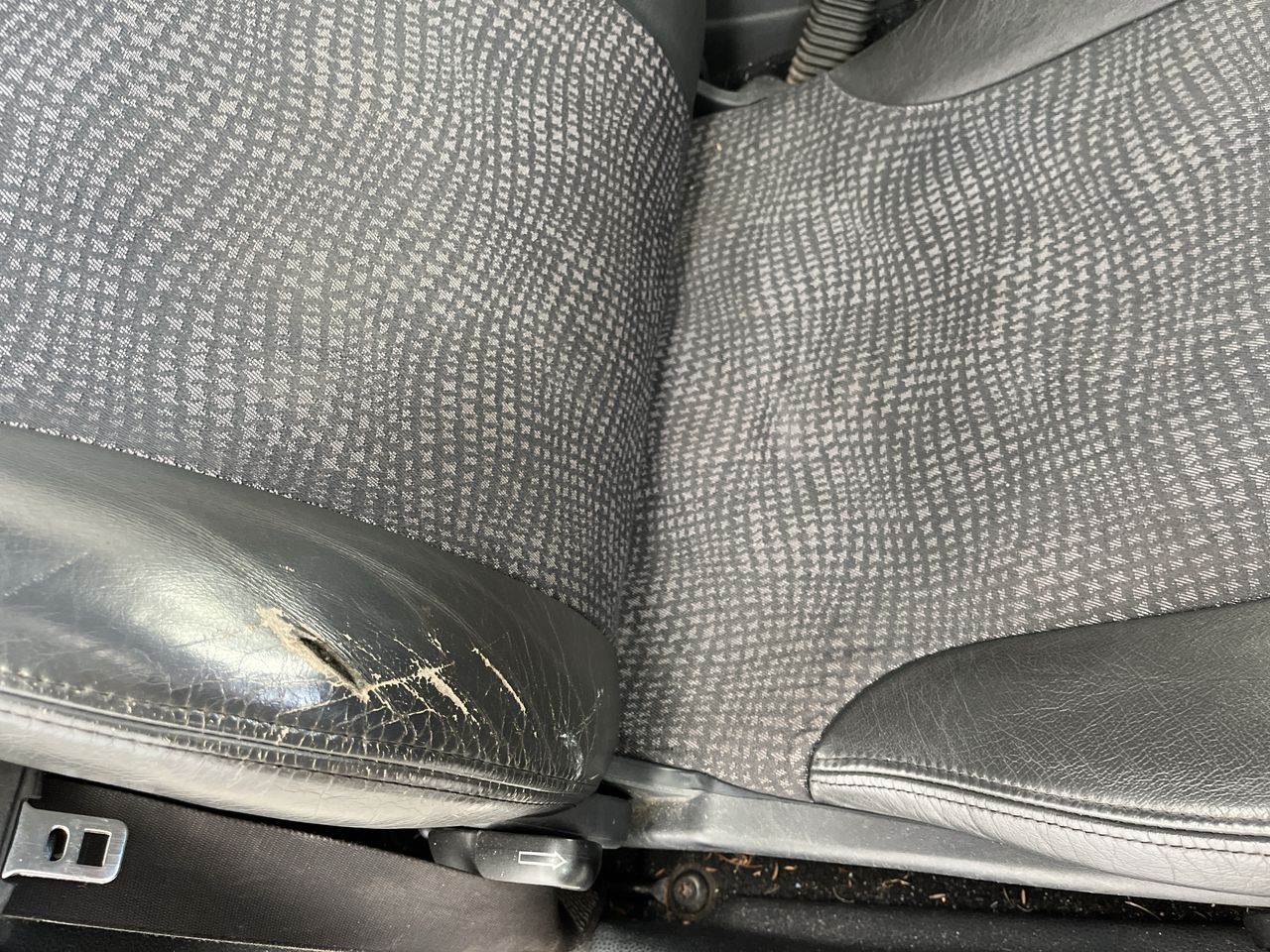 • Interior: Steering wheel worn. Seat torn