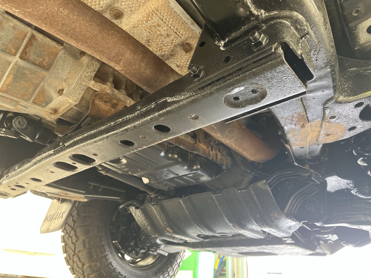 • Comment: Heat shield for exhaust rattling. Resprayed underneath can see corrosion. Corrosion on tray.