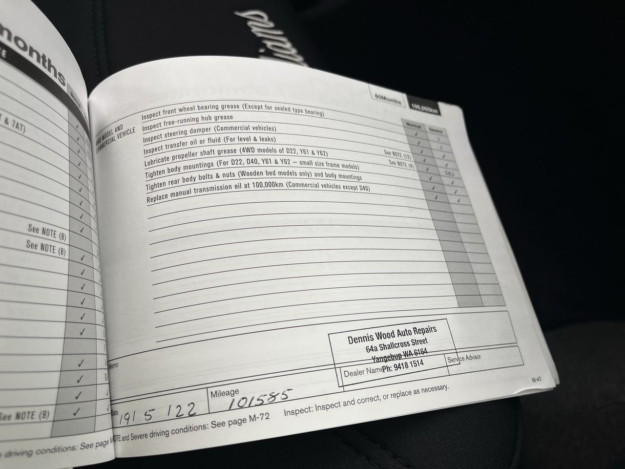• Dents or marks on body consistent with age and kilometres.