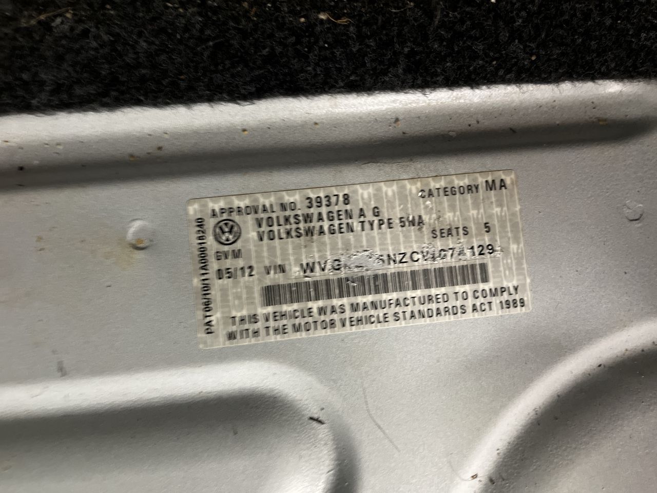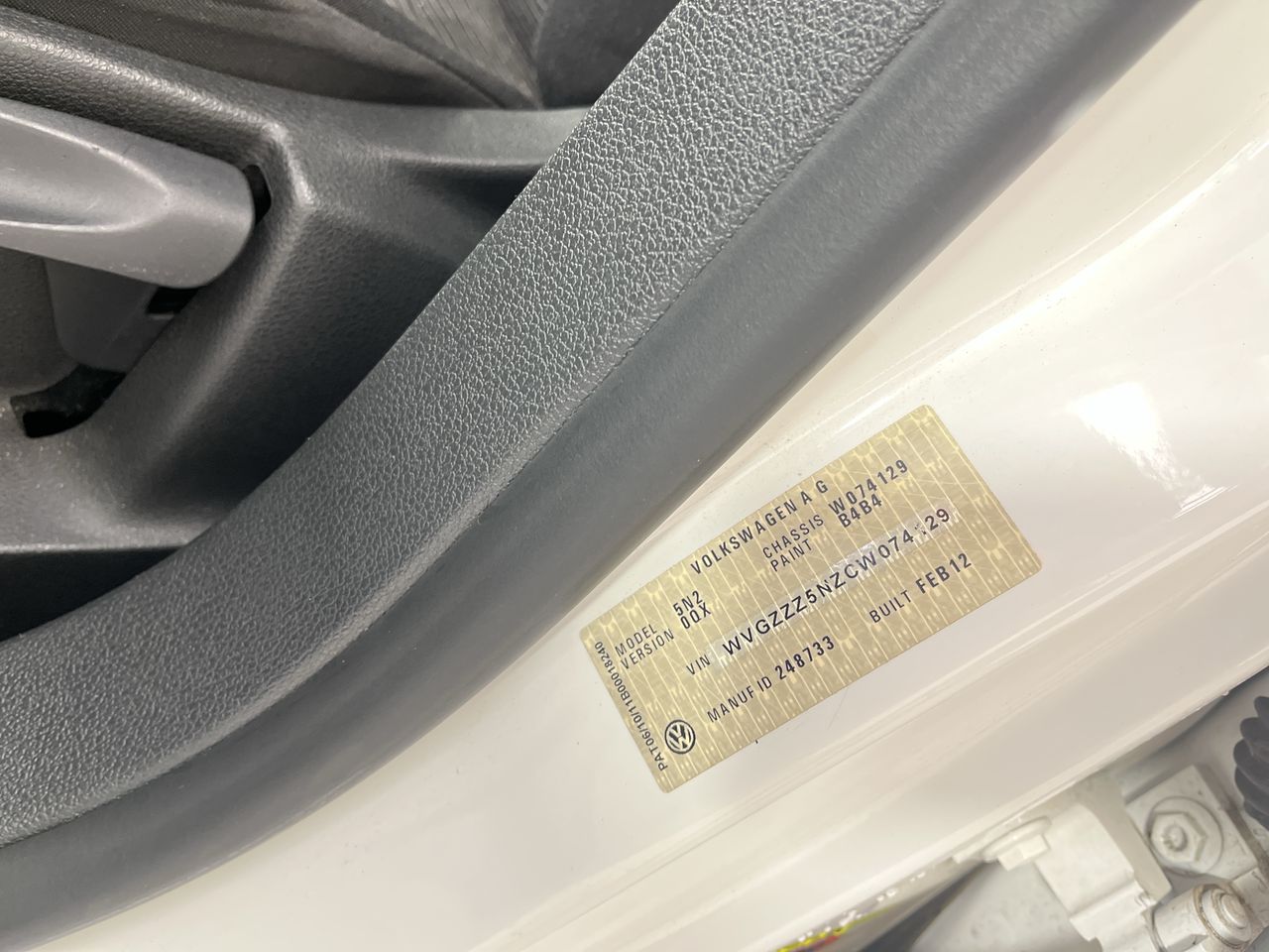 • VIN: WVGZZZ5NZCW074129