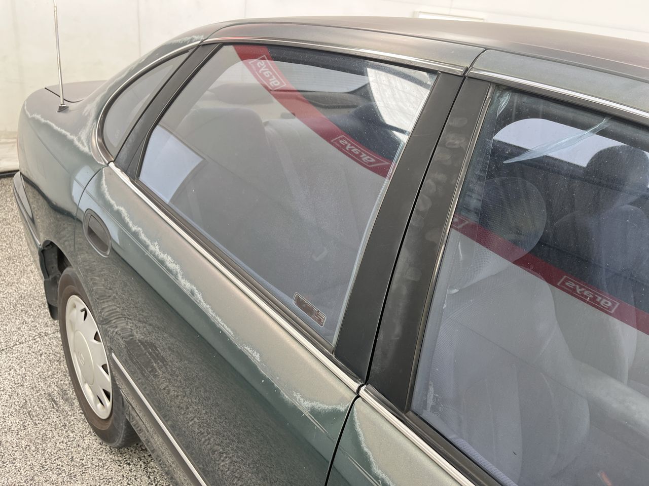 • Interior: Steering wheel heavily worn. Center console worn. Tint bubbling. Left door handle completely broken, drivers side broken but still functional. A/C button doesn`t stay activated, metal spring jammed next to it to hold it in, Exterior: Wind screen chipped.