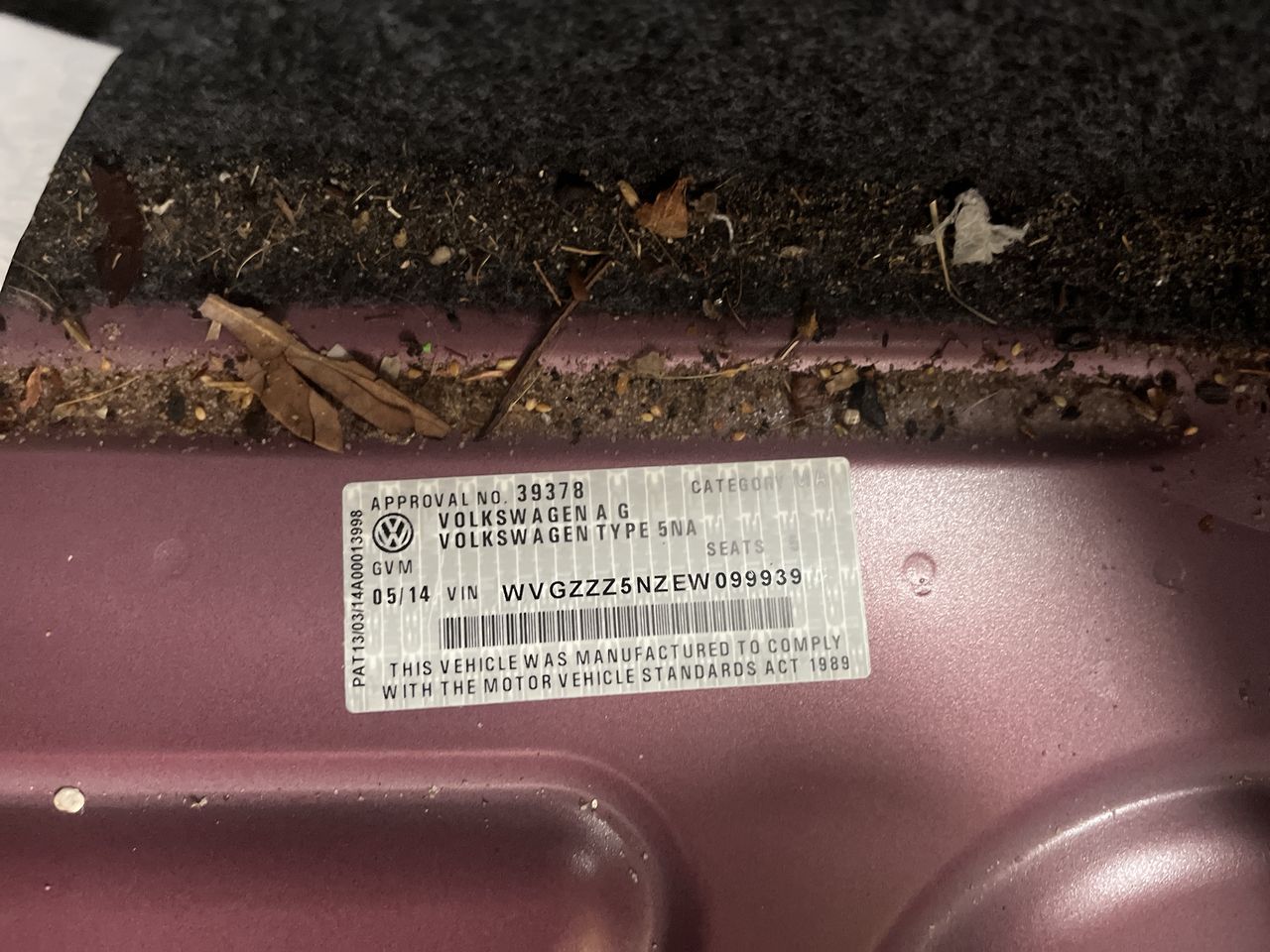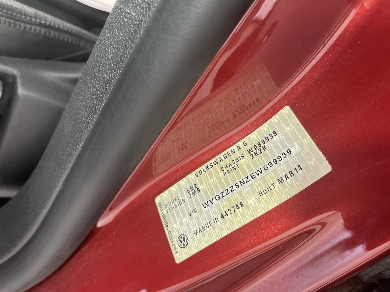 • VIN: WVGZZZ5NZEW099939