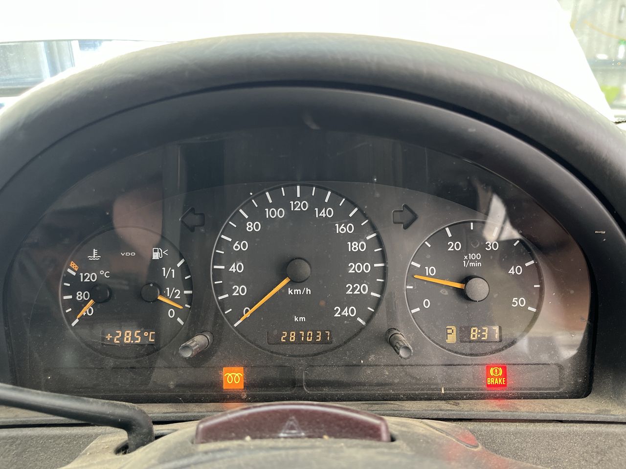 • Interior: Steering wheel worn, glow plug warning light.