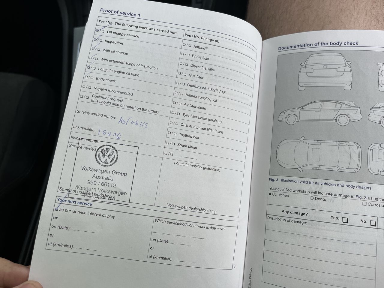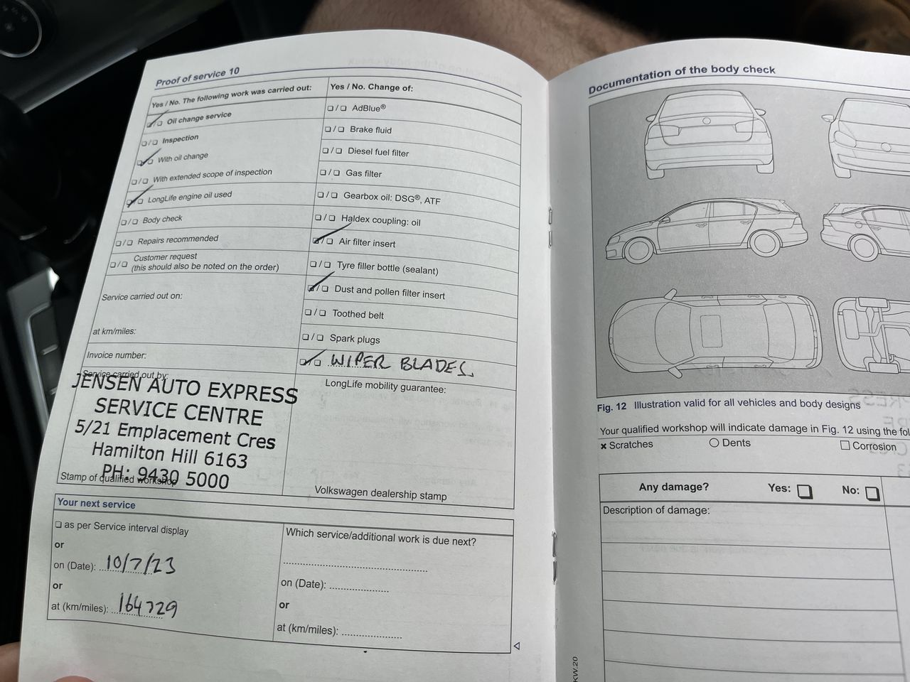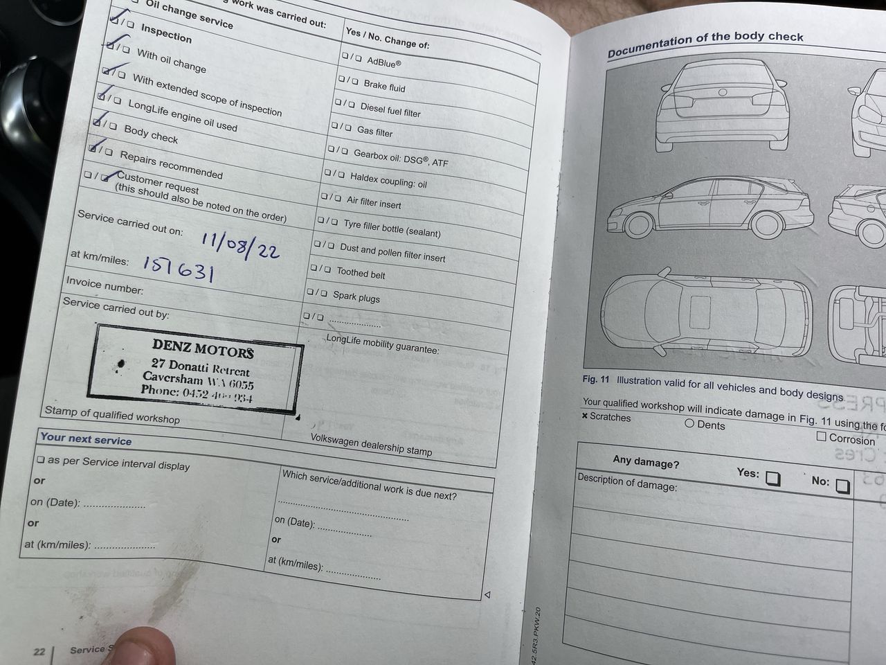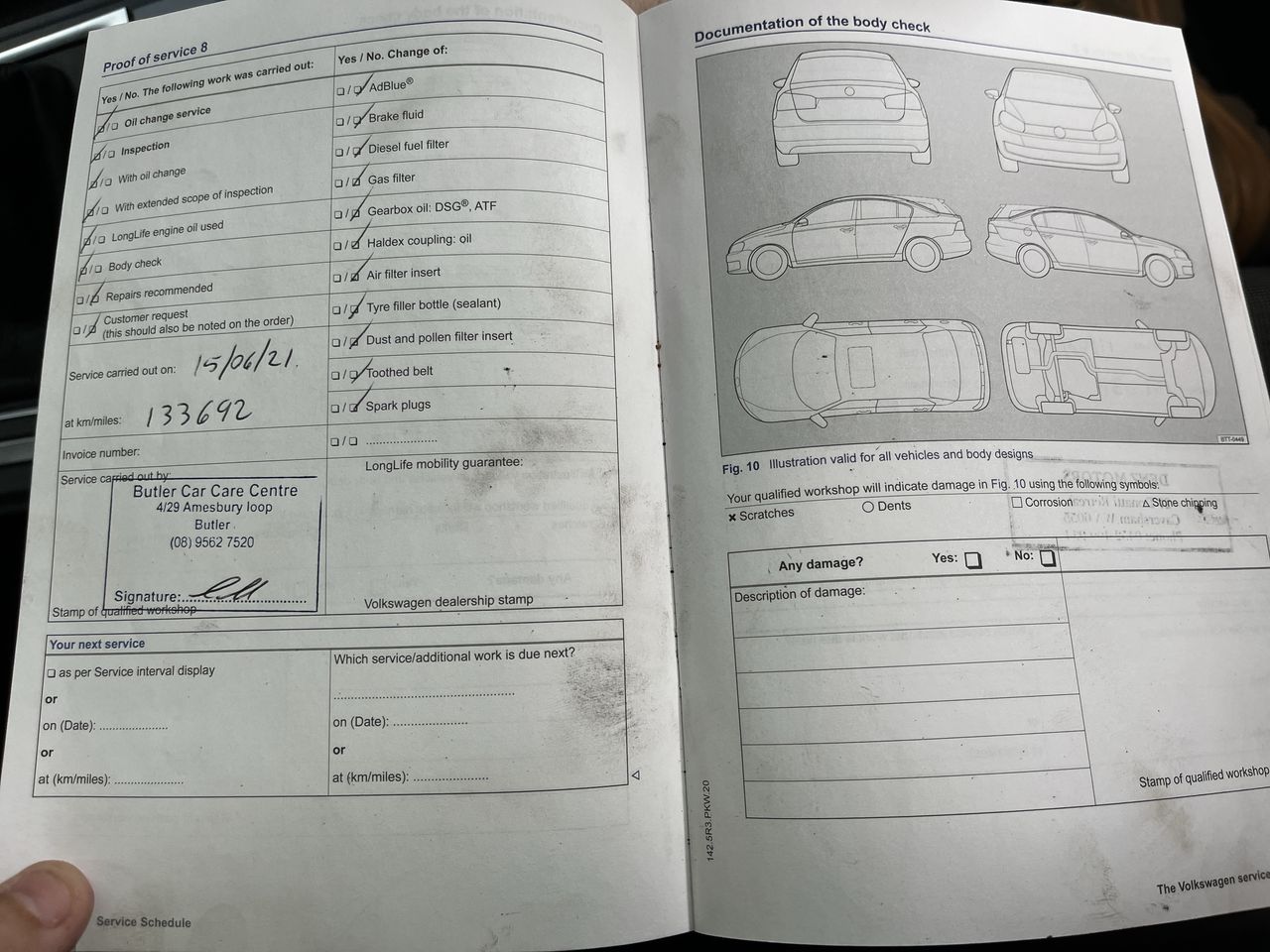 • Dents or marks on body consistent with age and kilometres.