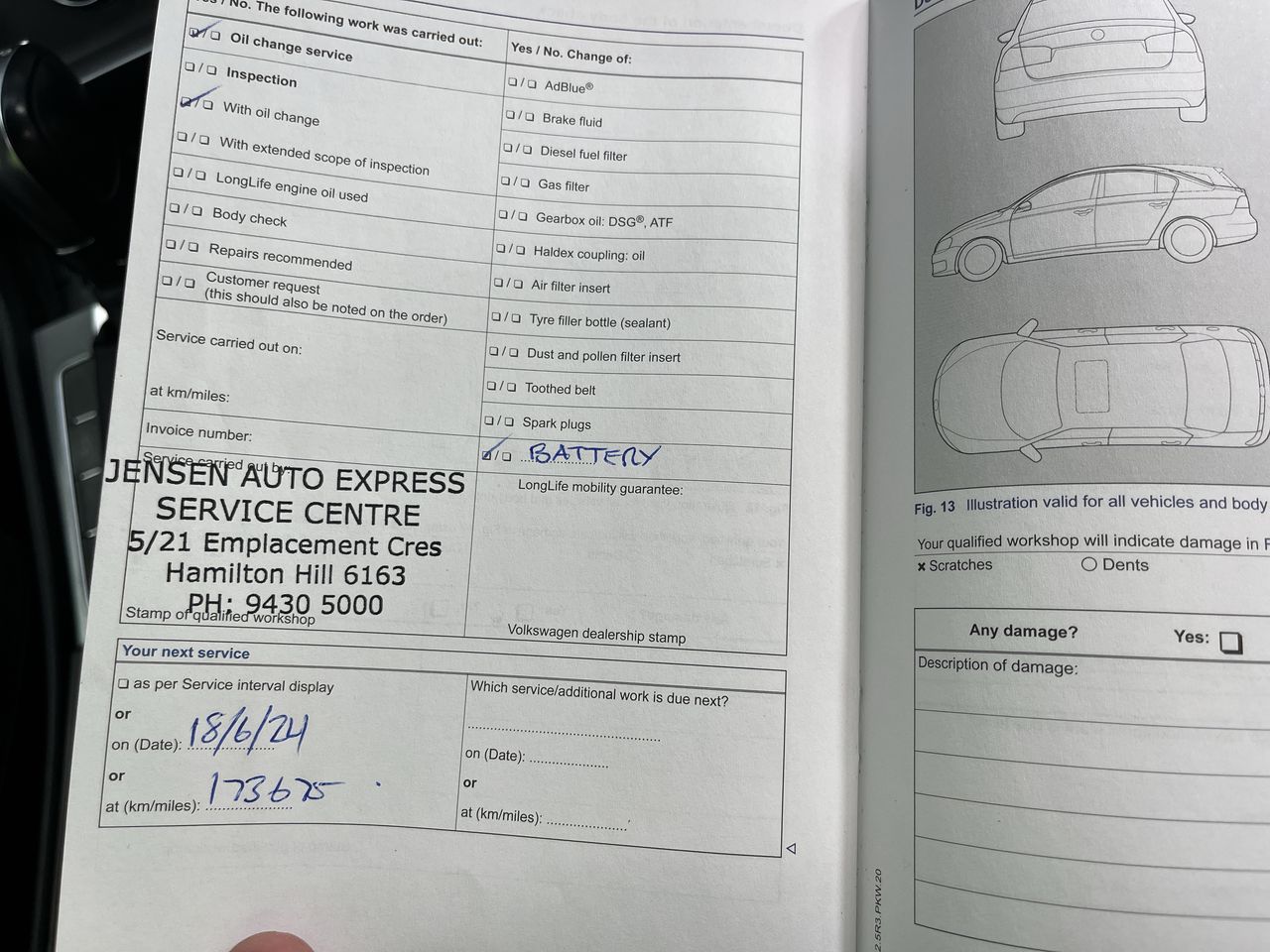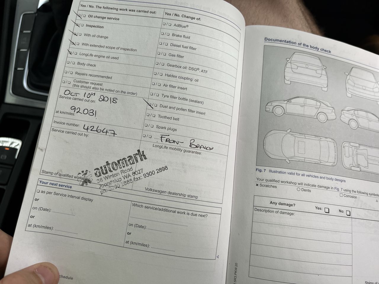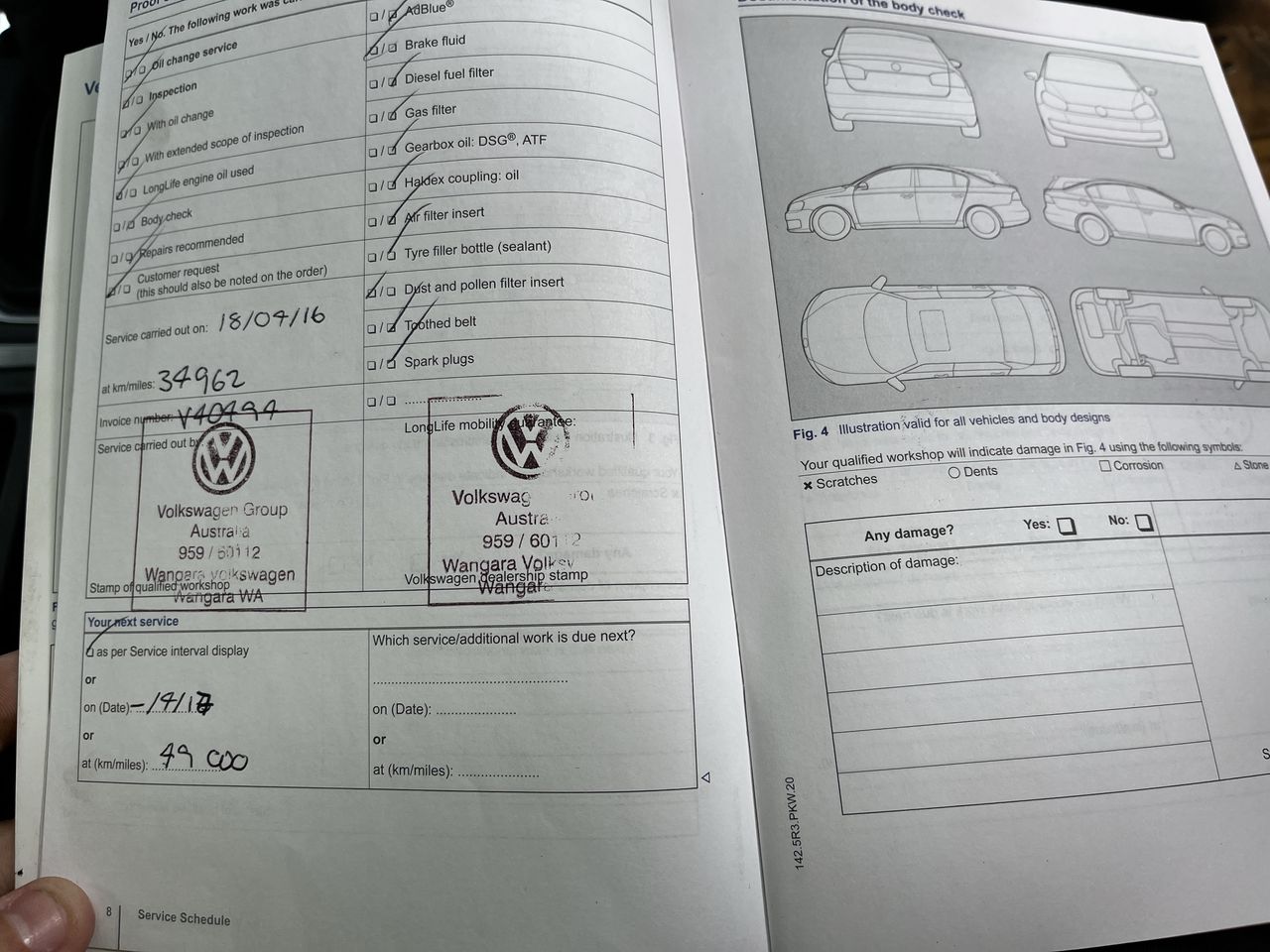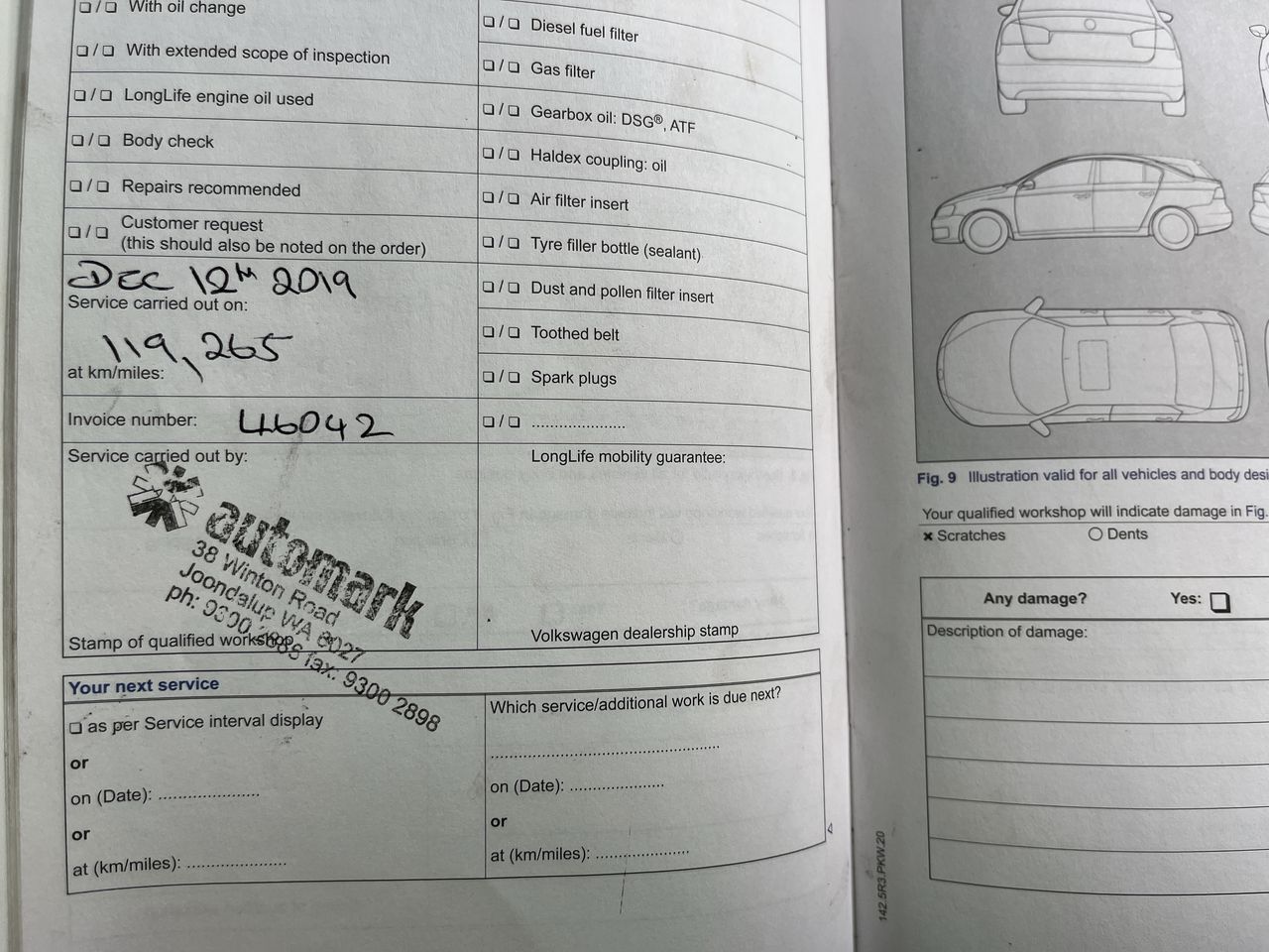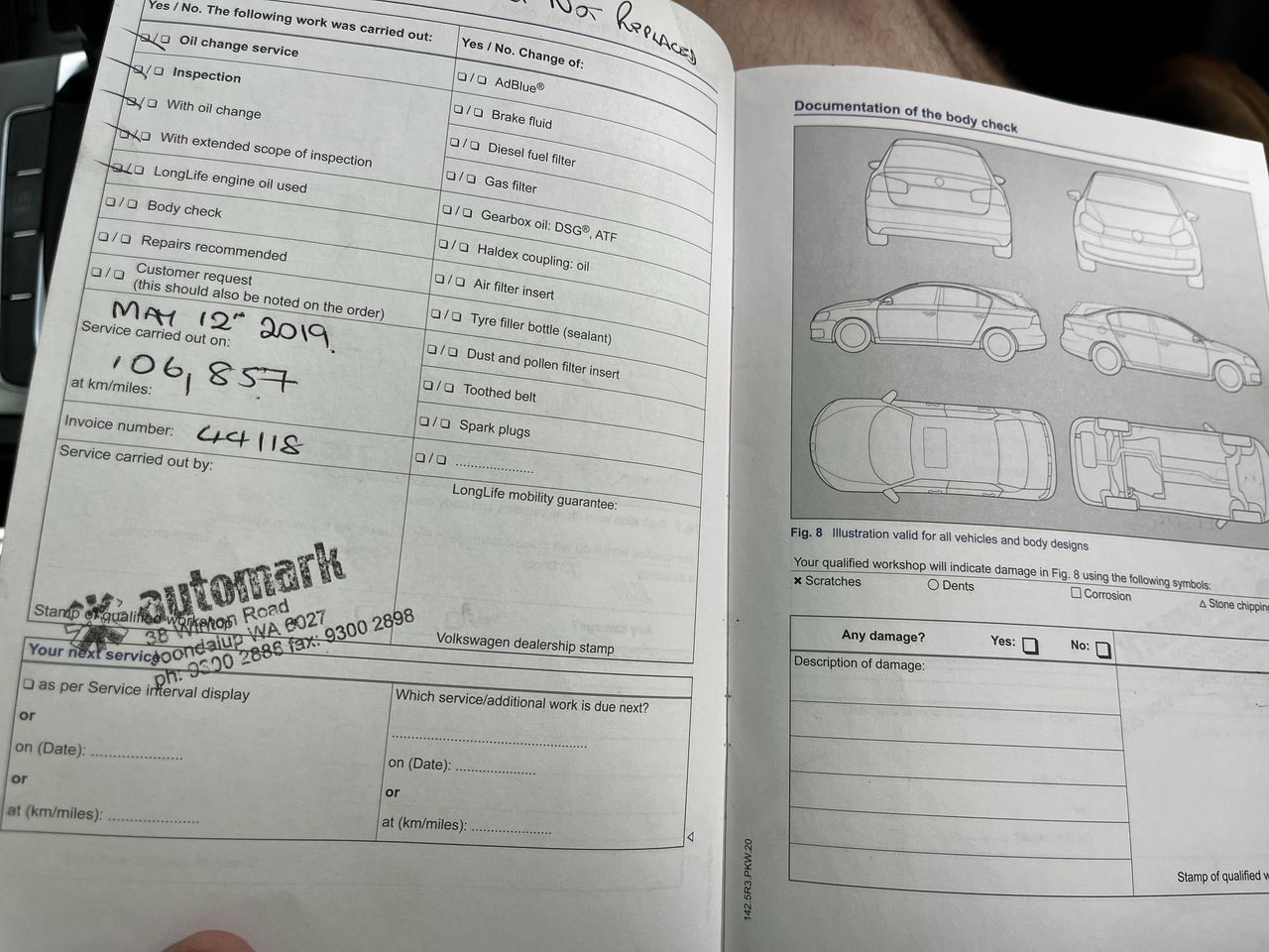 • Dents or marks on body consistent with age and kilometres.