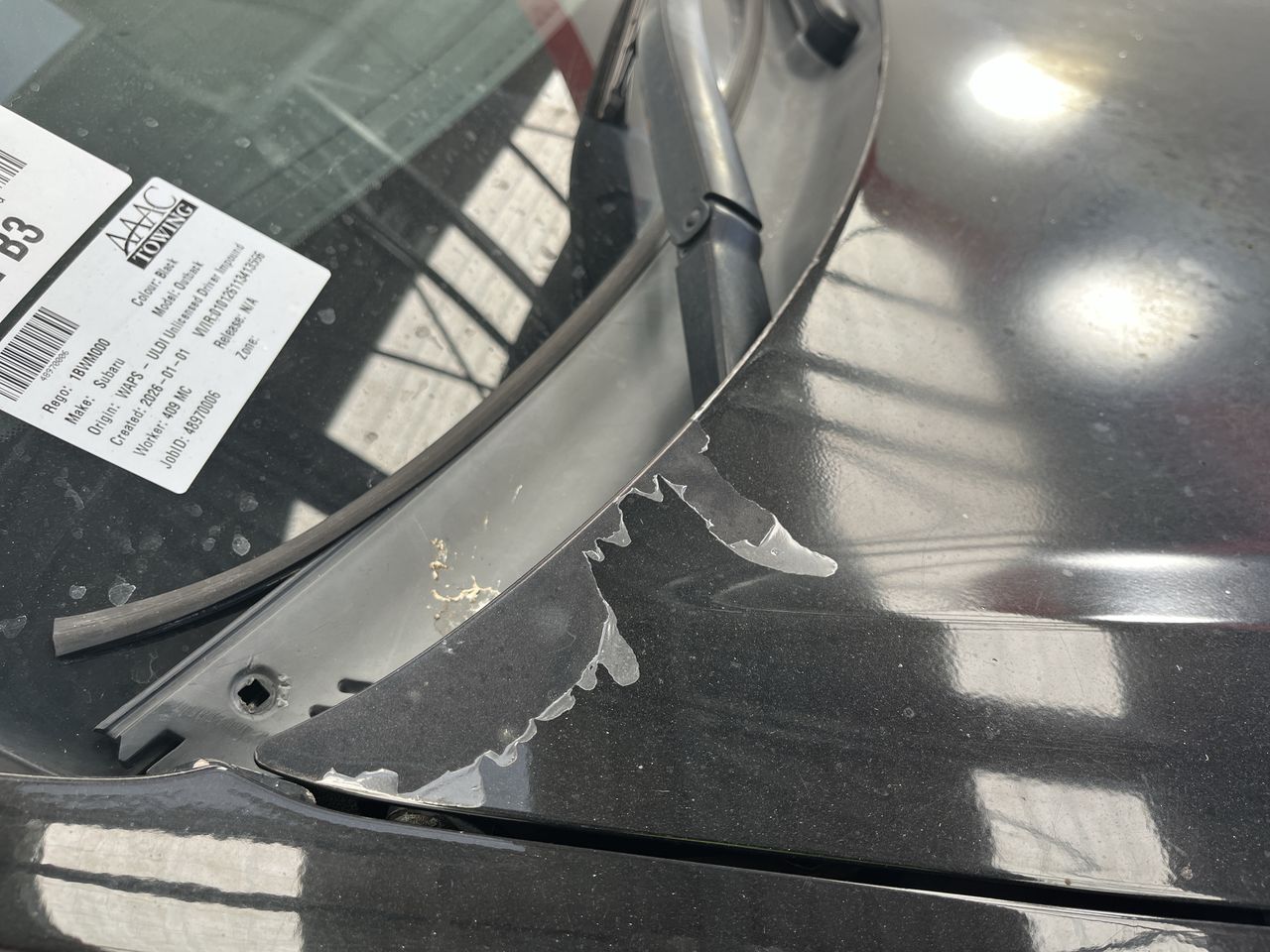 • Spoiler on roof damaged.