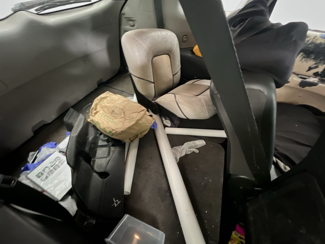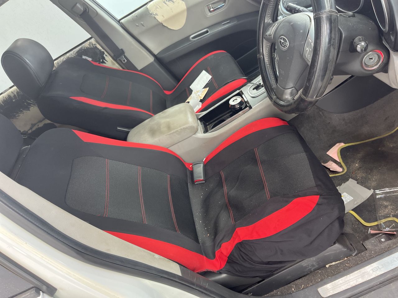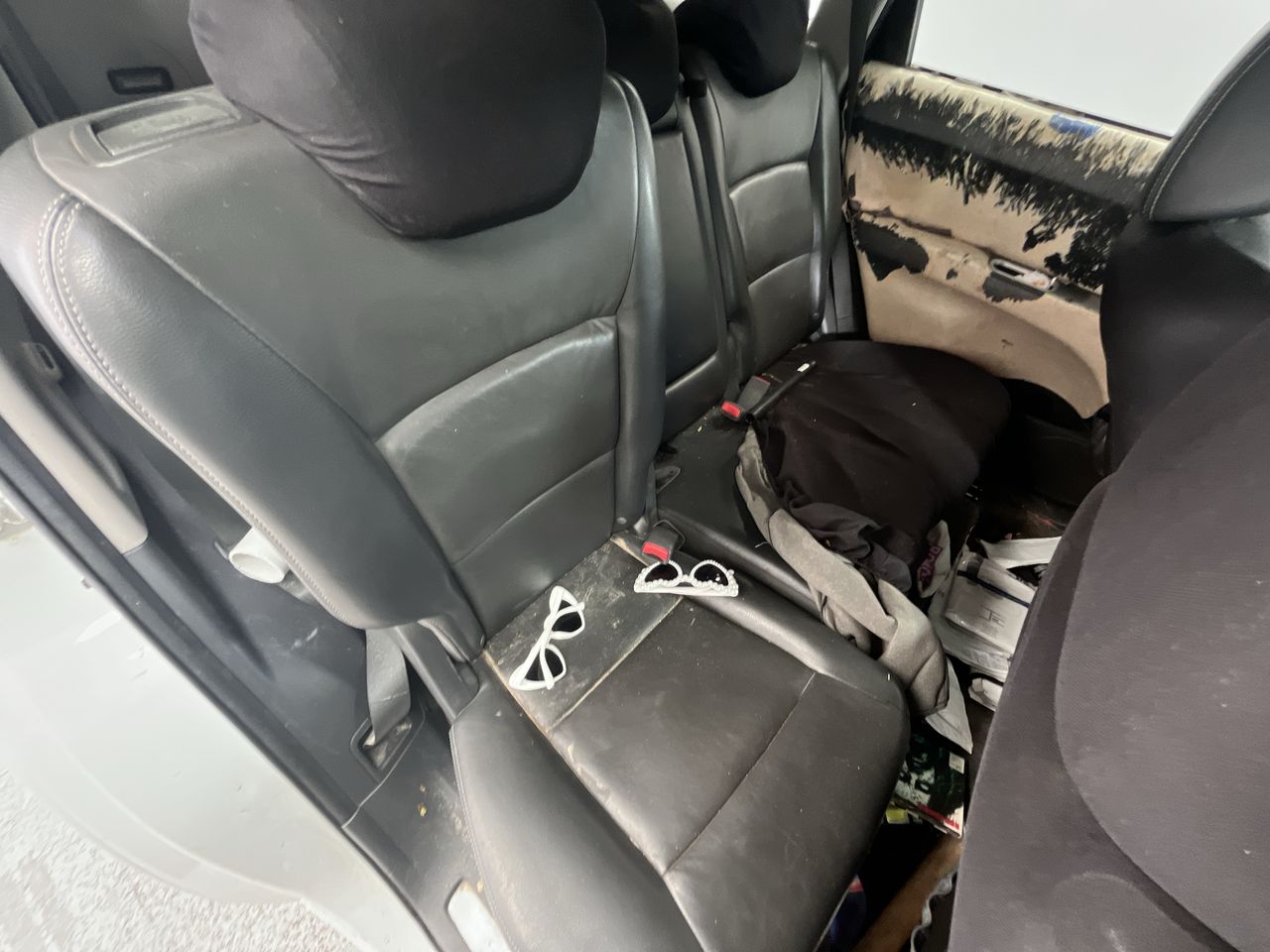 • Interior: Centre console lid worn, Steering wheel worn, Very poor condition. Most trims worn or broken, Exterior: dislodge front bumper, Flat rear left tyre