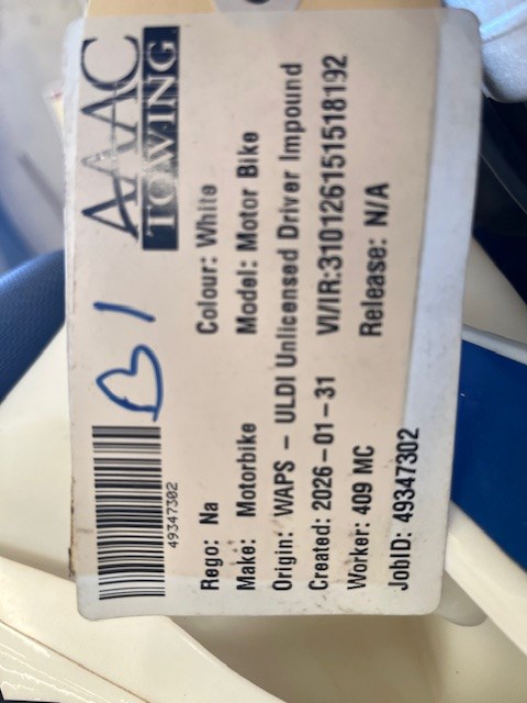 • You are required to transfer registration within 7 days of sale date. Please note an approved engine immobiliser must be installed and operational. At the time of registration transfer, this is the responsibility of the purchaser.