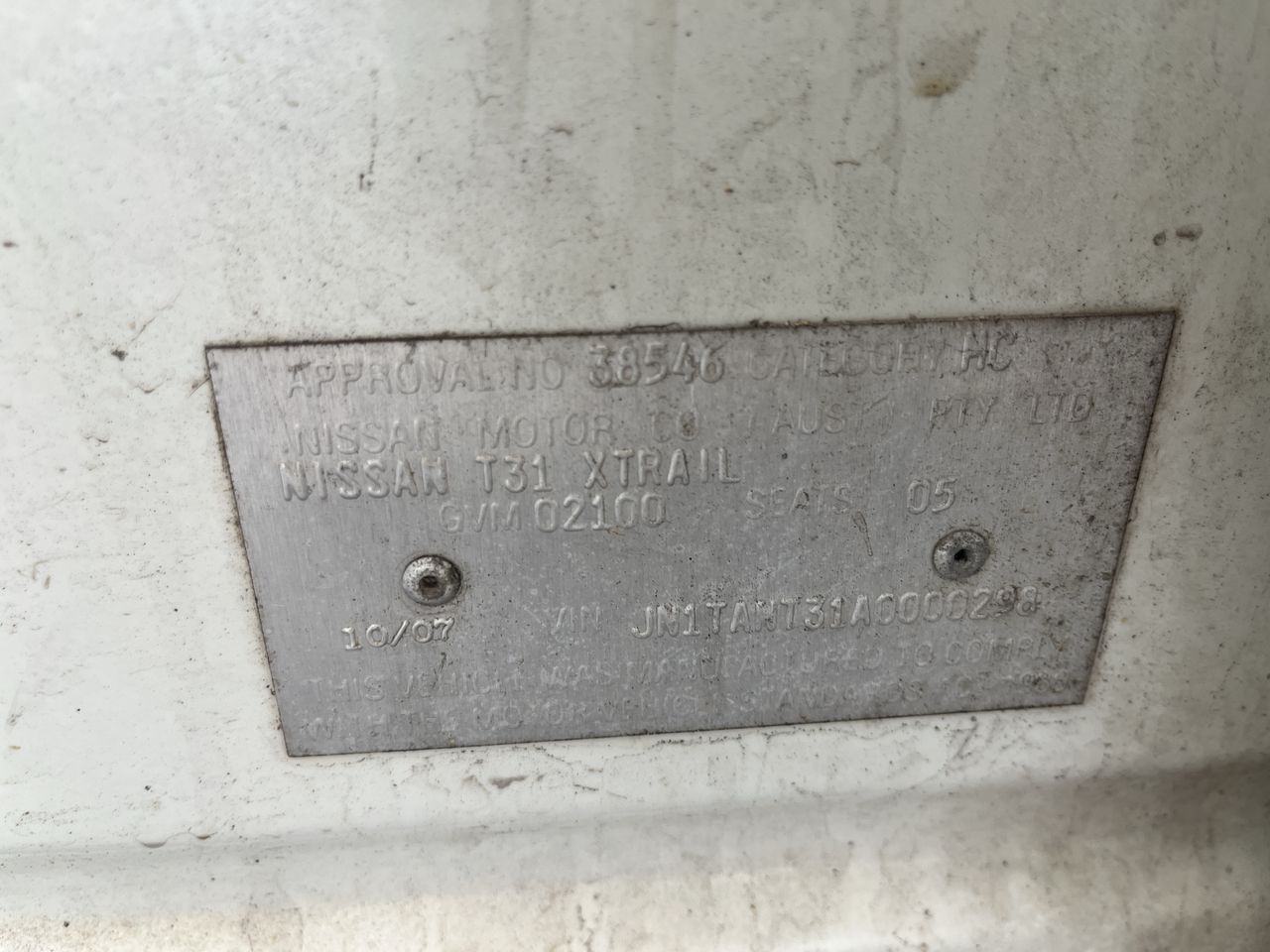 • VIN: JN1TANT31A0000298