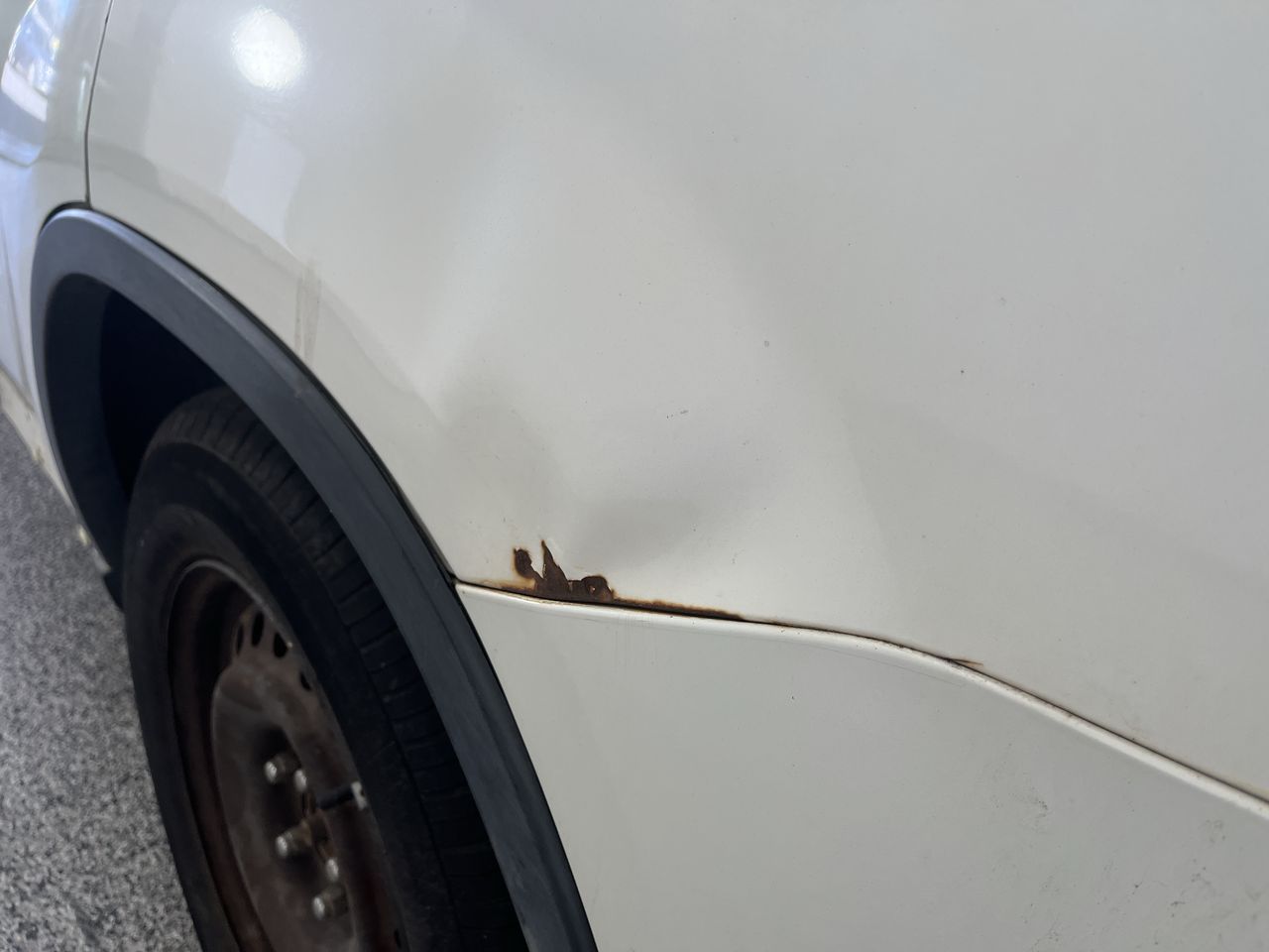 • Front left wheel has a major dent in it.