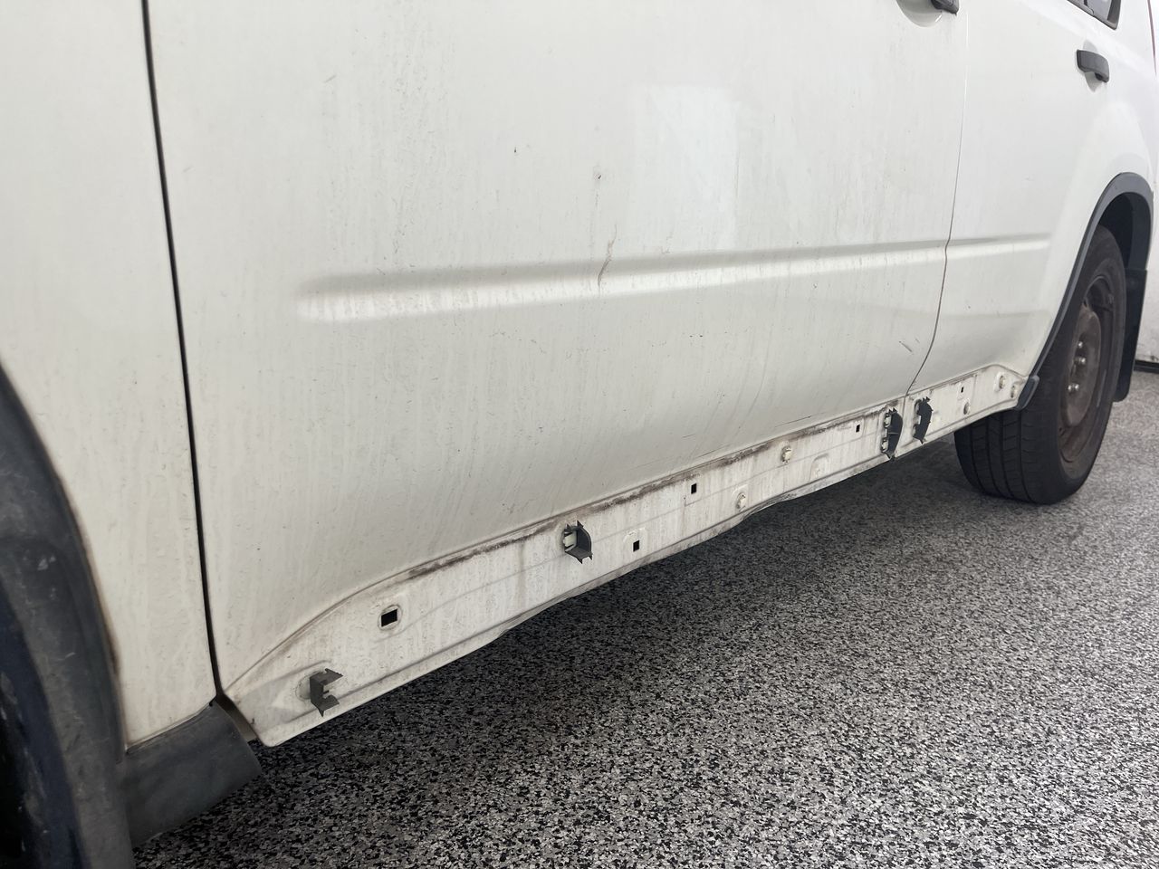 • Missing lower trim panel around vehicle.
