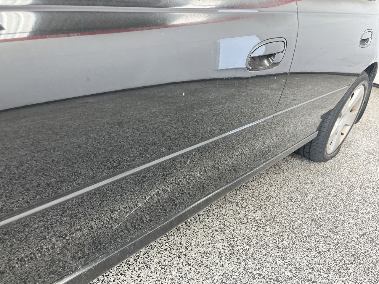 • Interior: Steering wheel worn, tint bubbling, Exterior: Front bumper not clipped properly.
