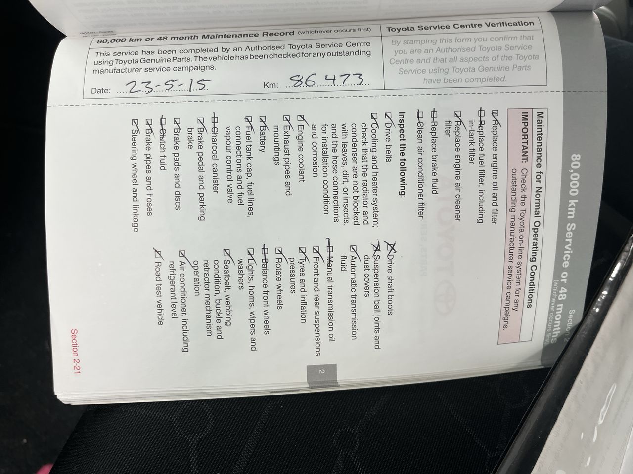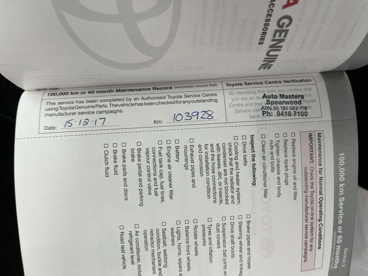 • Dents or marks on body consistent with age and kilometres.