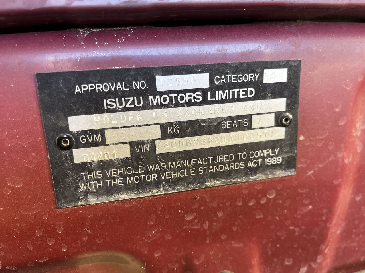 • VIN: JACUBS26G17100571