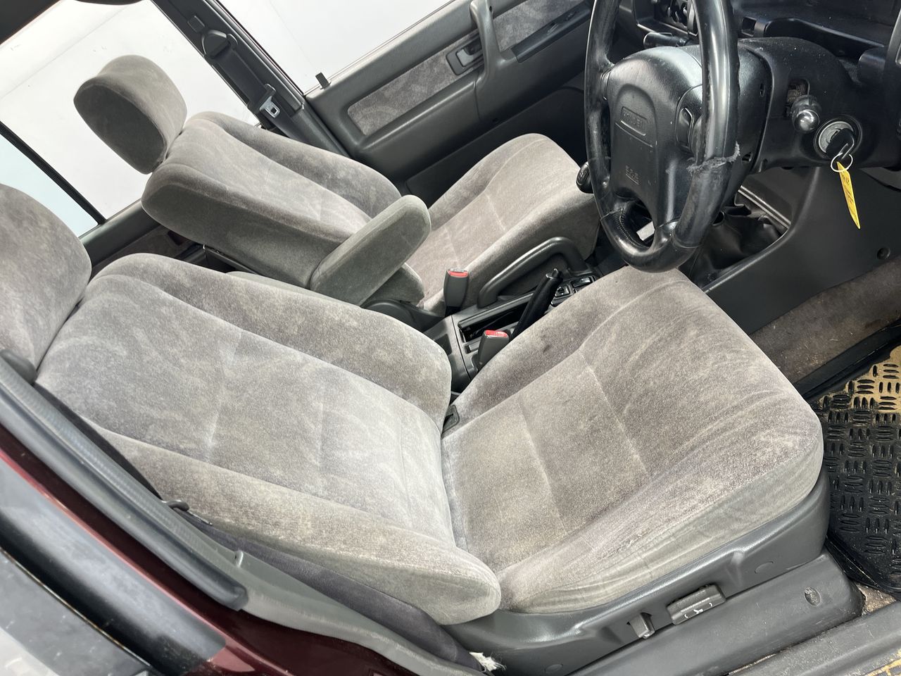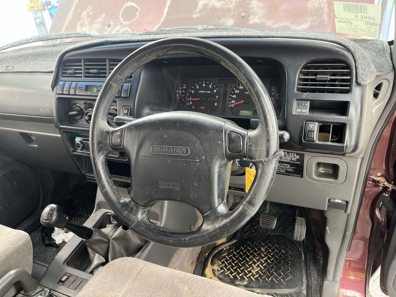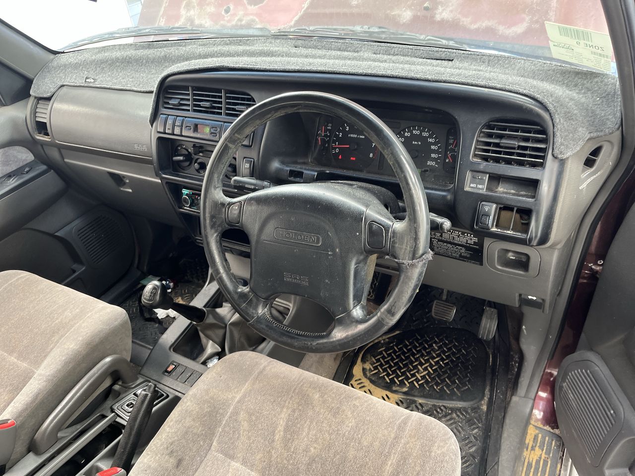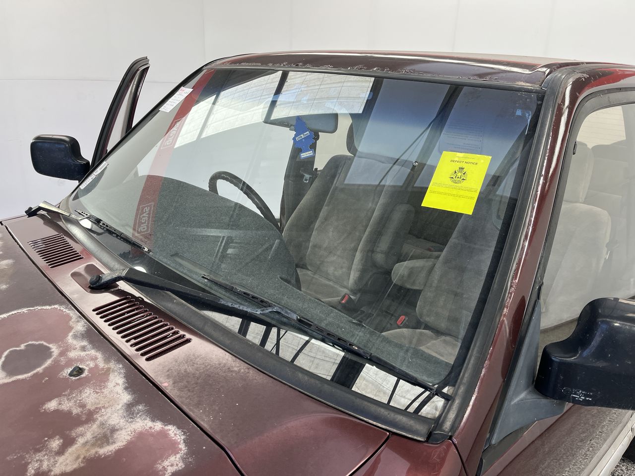 • Interior: Steering wheel worn, Exterior: Flat tyre, windscreen chipped, roof trims worn.