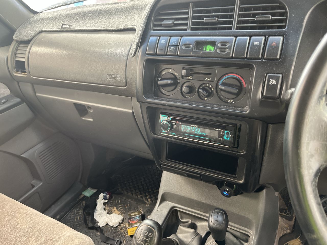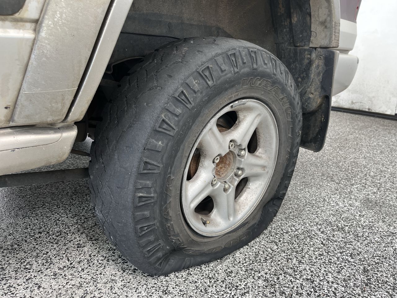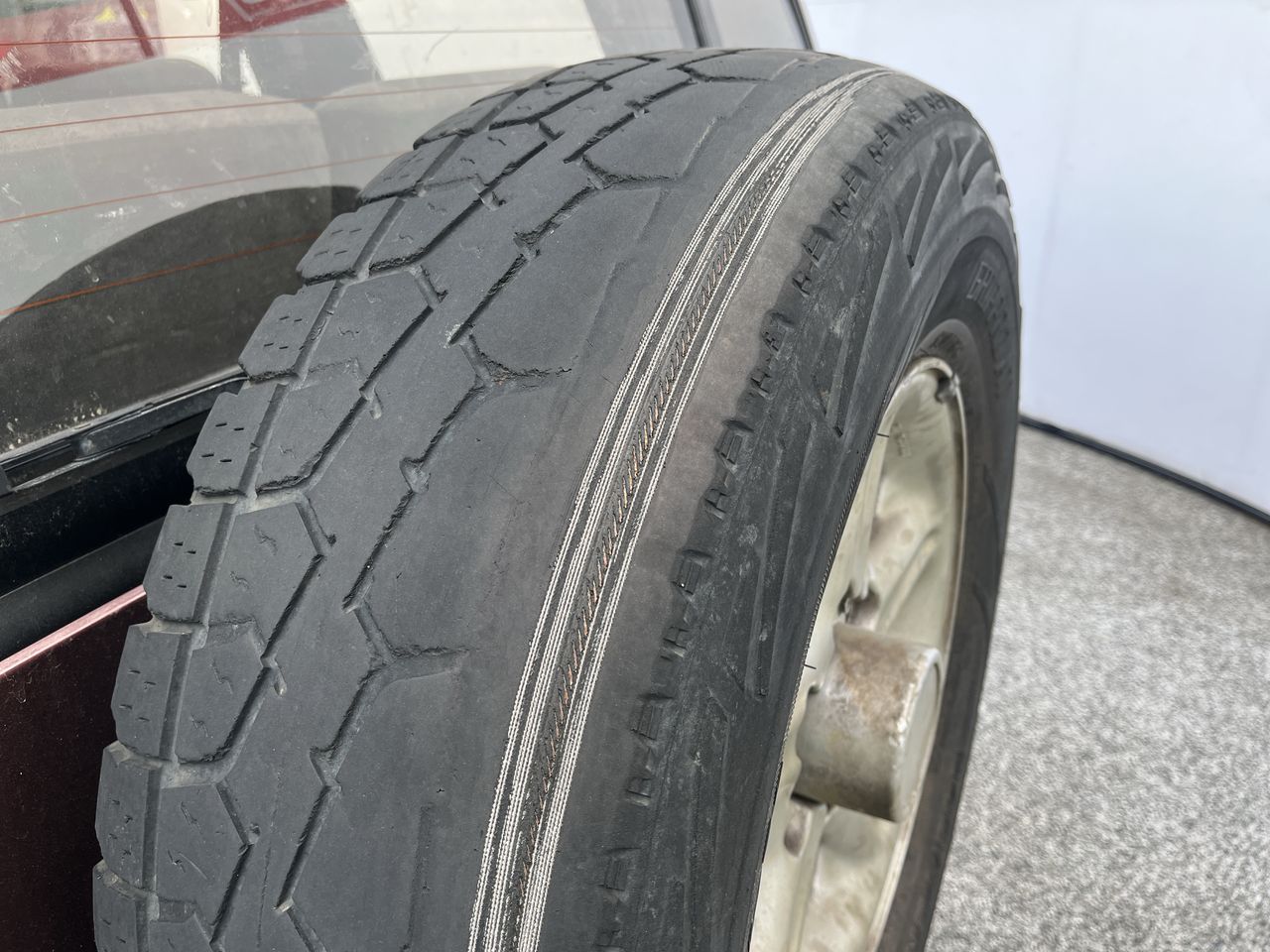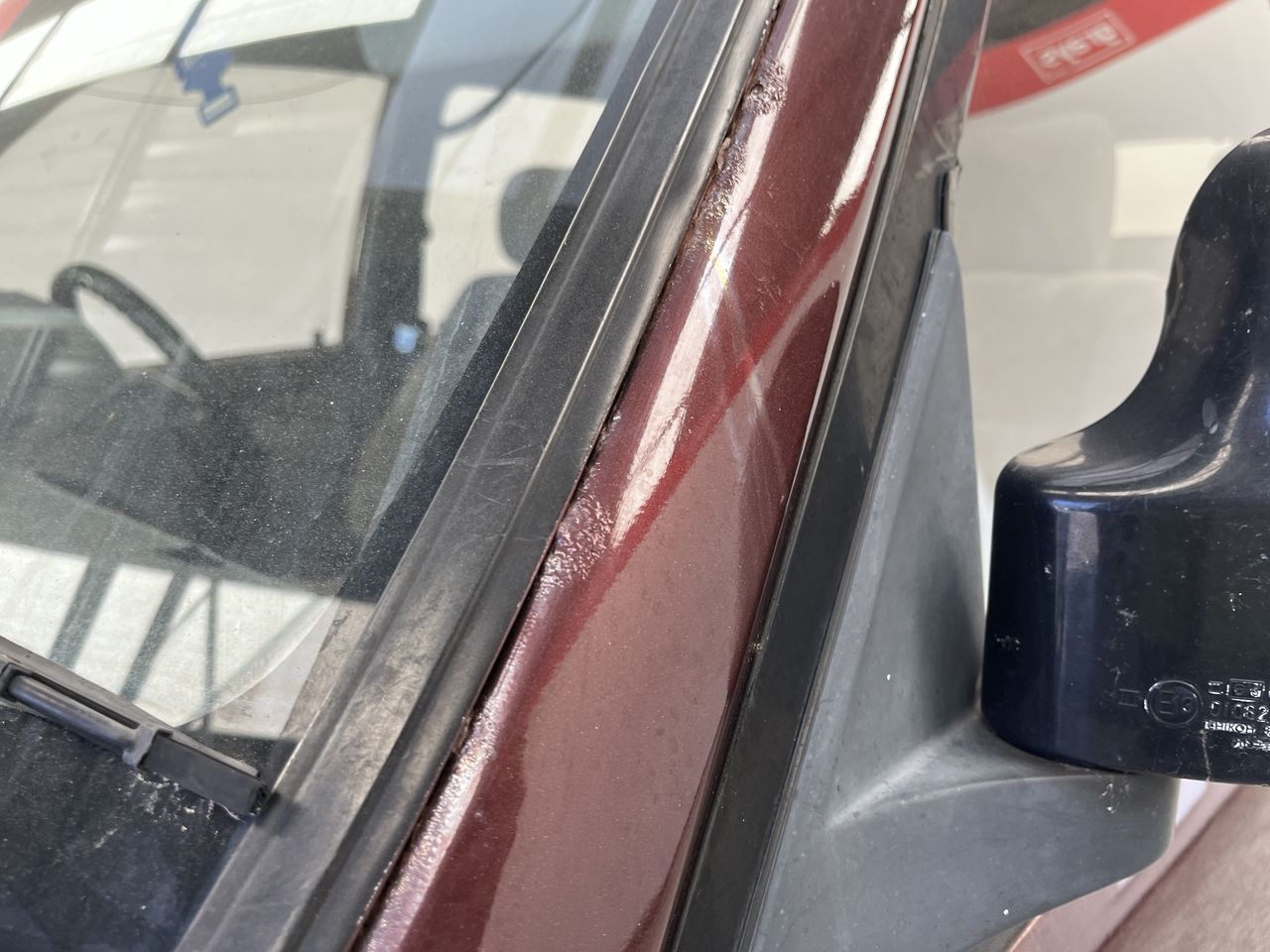 • Interior: Steering wheel worn, Exterior: Flat tyre, windscreen chipped, roof trims worn.