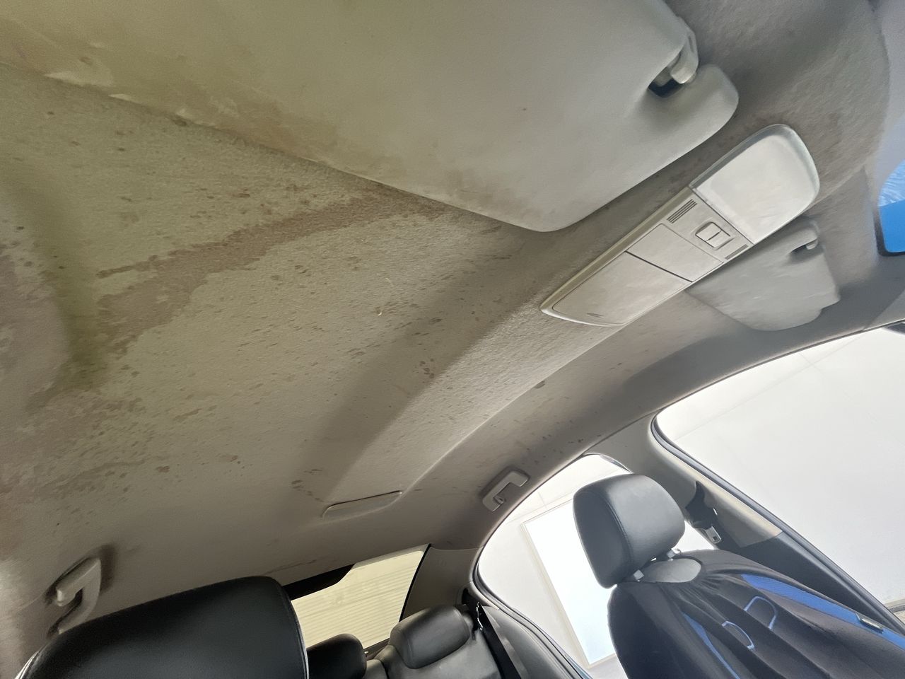 • Interior: Driver door handle snapped. Roof lining stained, centre console lid missing, seat trims damaged., Exterior: Smoke from exhaust.