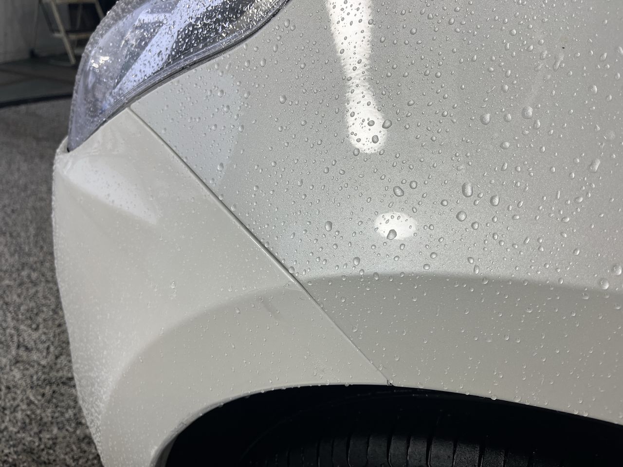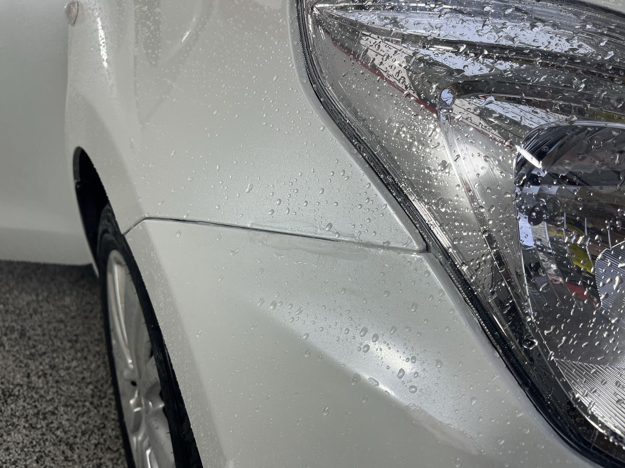 • Exterior: previous front end repair evident, bumper different colour, paint runs, misaligned panels, scratched headlight.