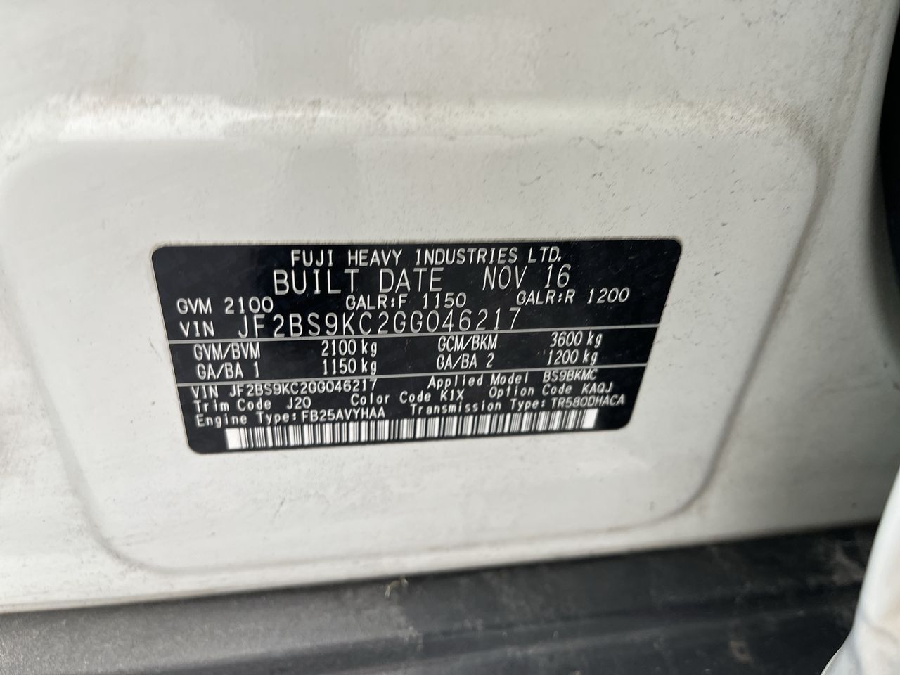 | Part of Sale | 2016 Subaru Outback 2.5i B6A CVT Wagon | ||||||||||||||
