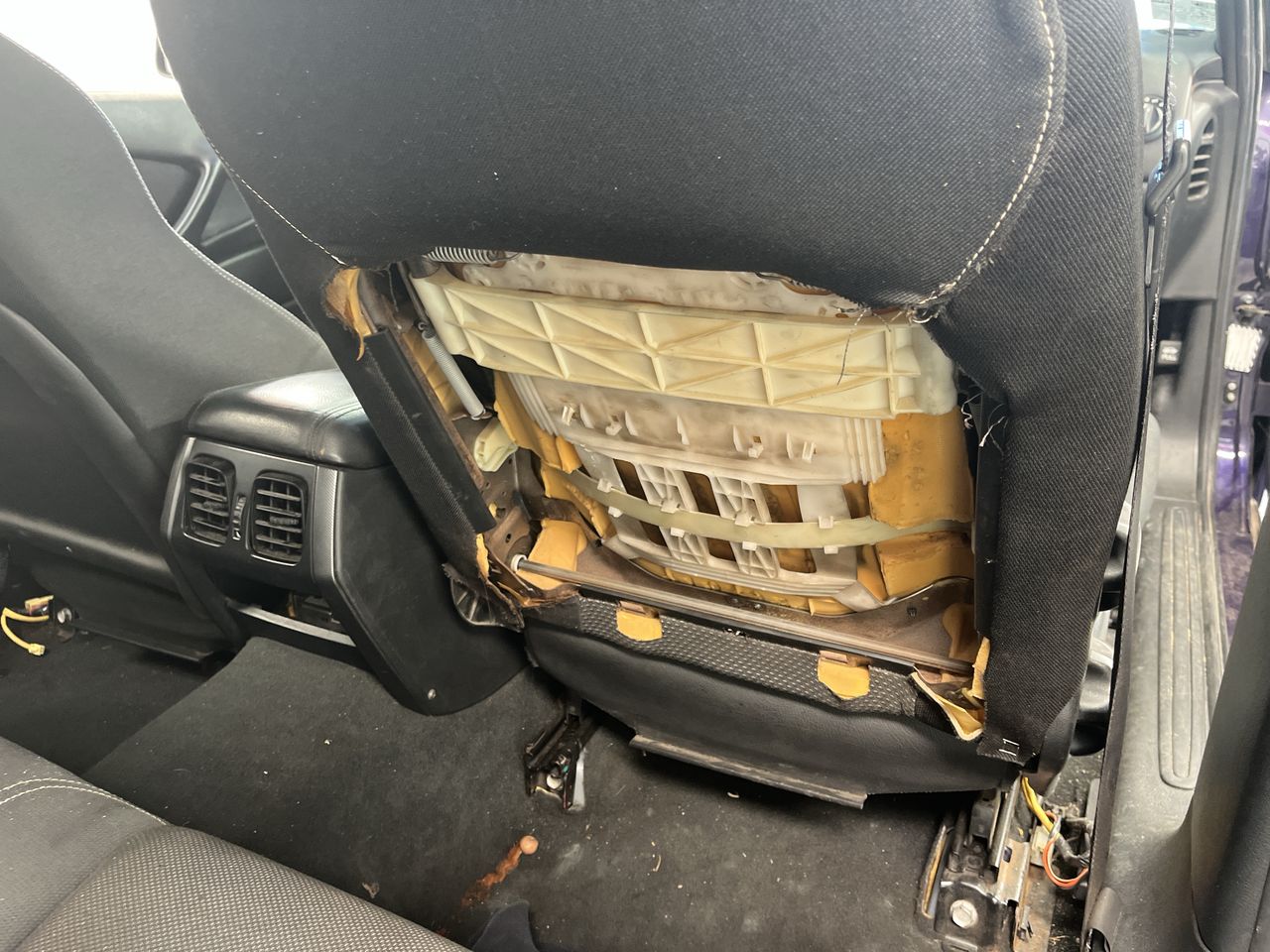 • Interior: Driver`s seat missing back panel, Exterior: Front and rear bumper not clipped properly.