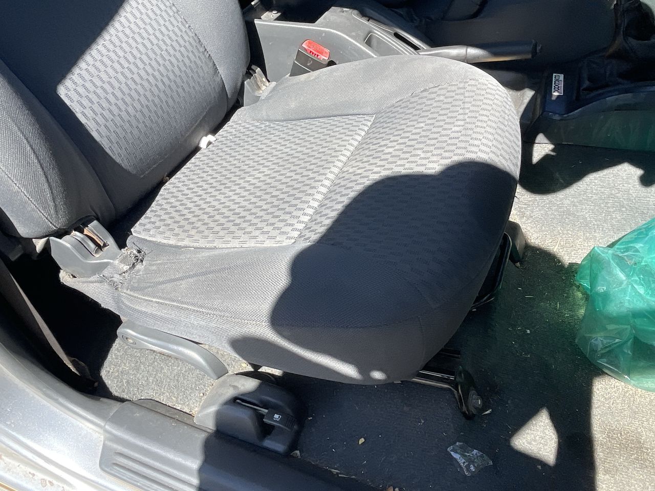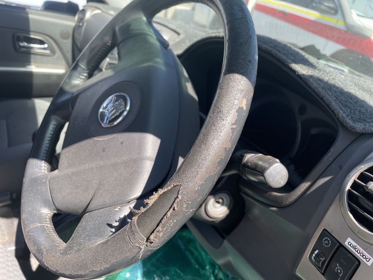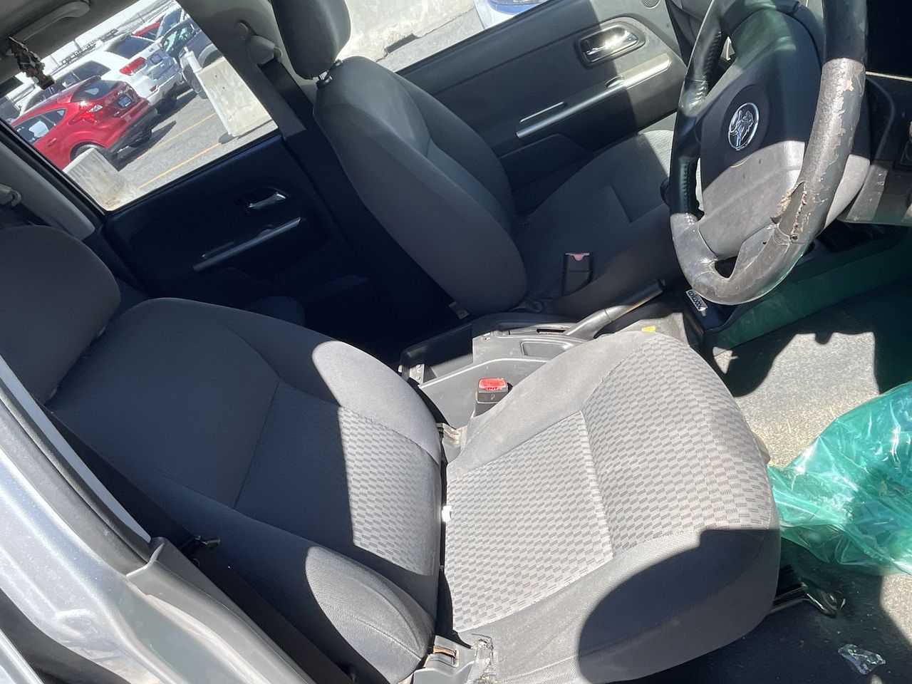 • Interior: Steering wheel worn, Exterior: Wheel trim broken, front passenger wheel needs replacing, headlights foggy, tyres flat.