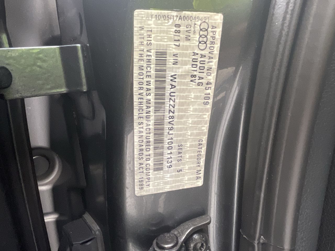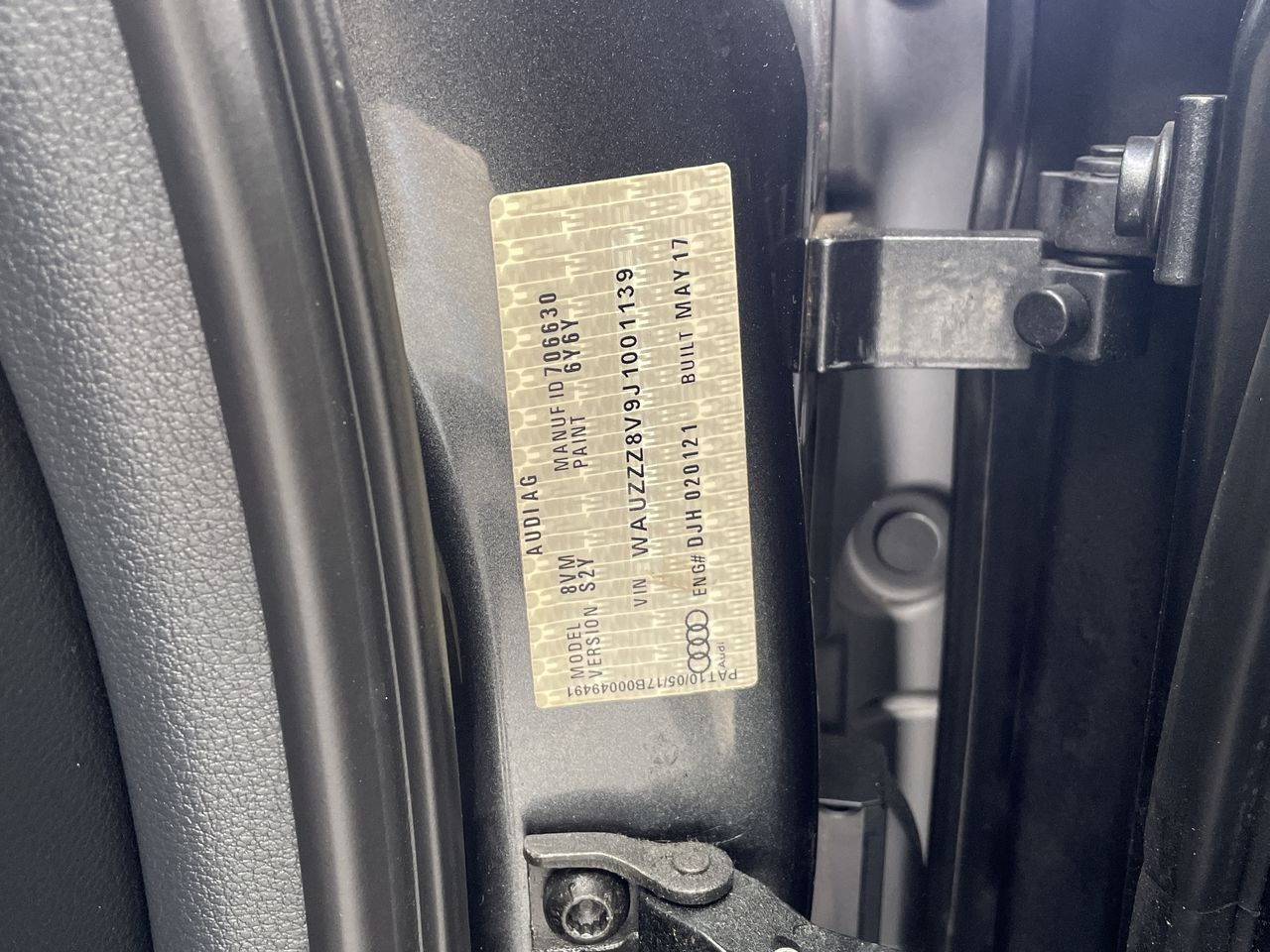 • VIN: WAUZZZ8V9J1001139