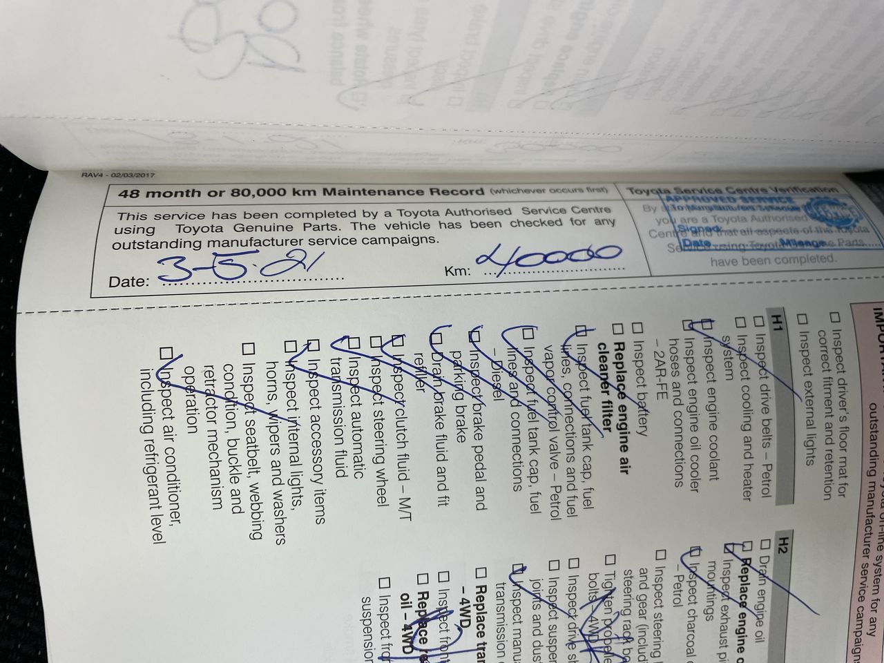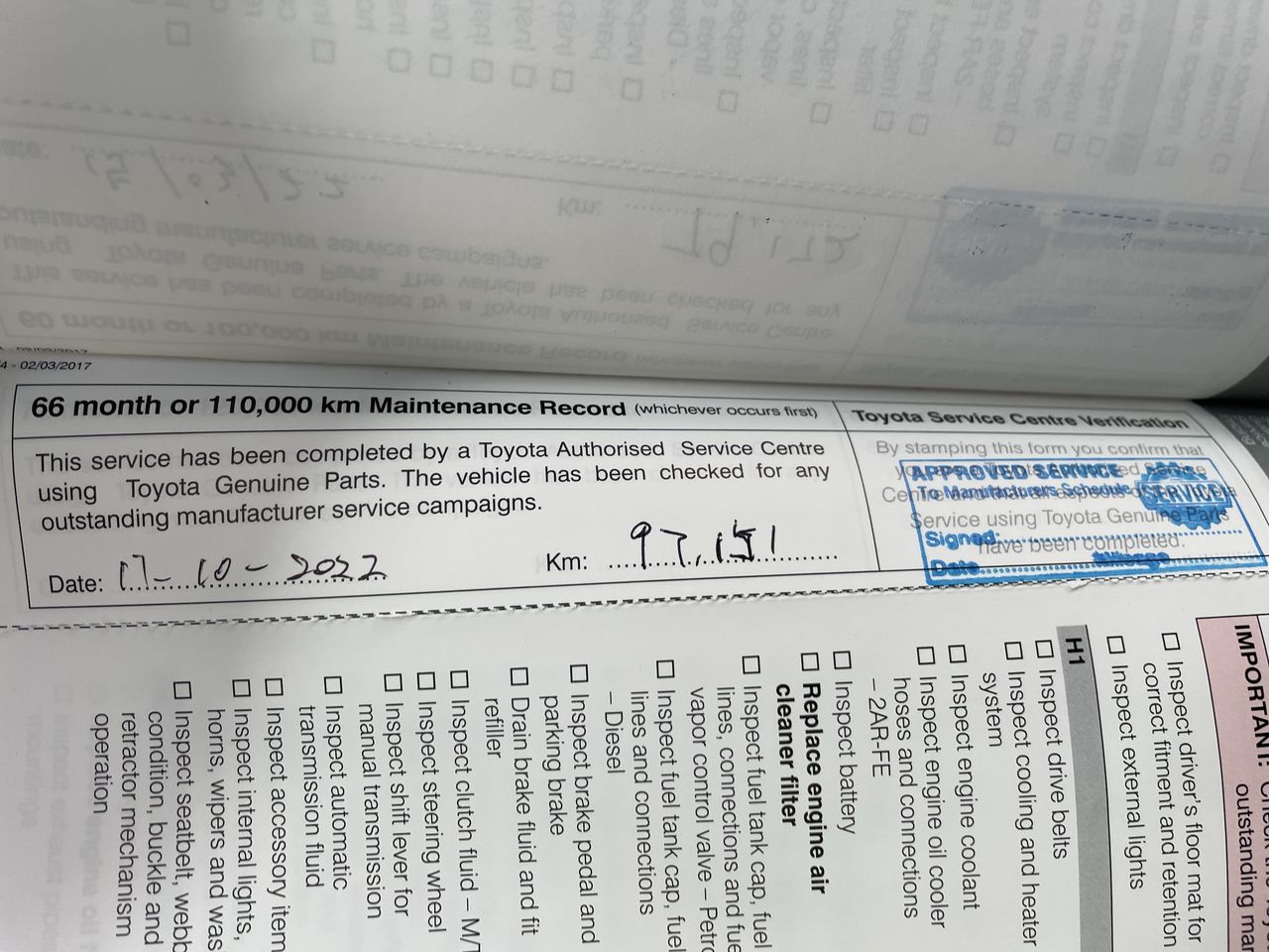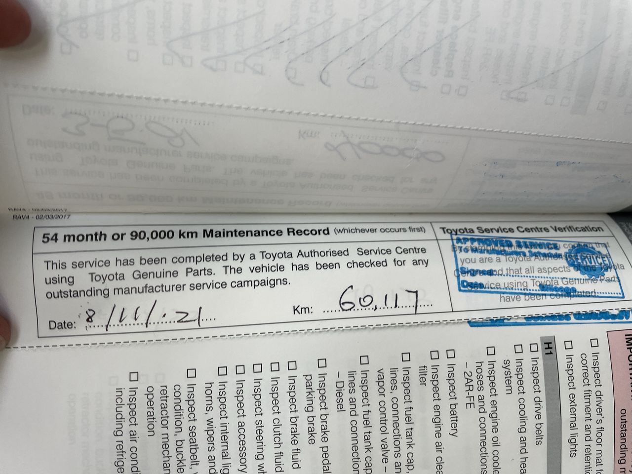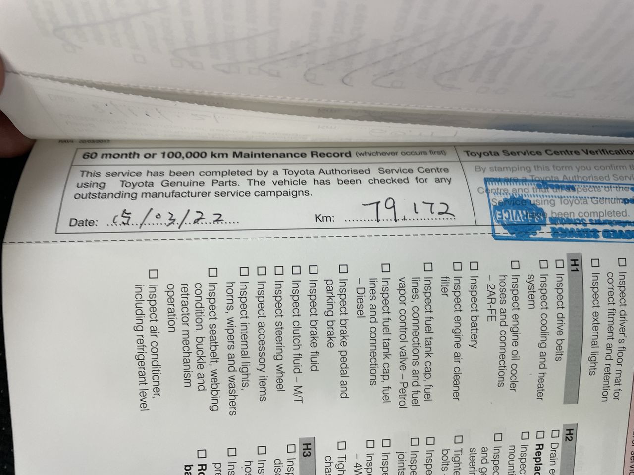 • Dents or marks on body consistent with age and kilometres.