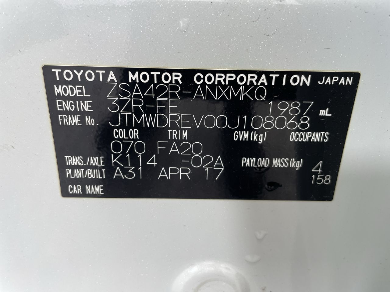 • VIN: JTMWDREV00J108068