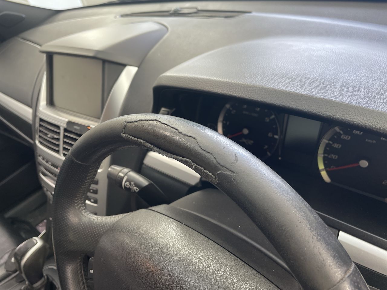 • Interior: Steering wheel worn.