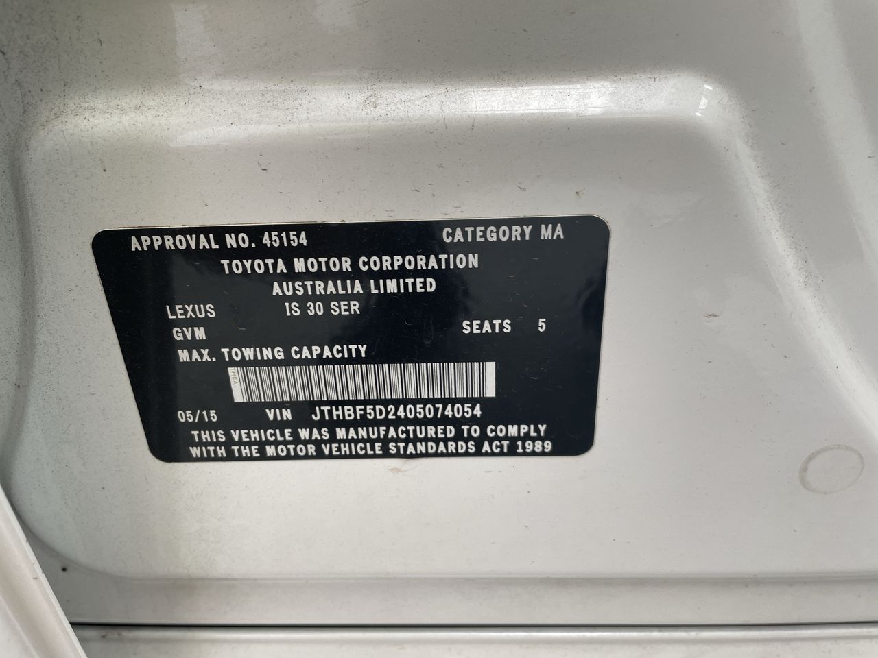 | Part of Sale | 2015 Lexus IS IS250 LUXURY GSE30R Automatic Sedan | ||||||||||||||