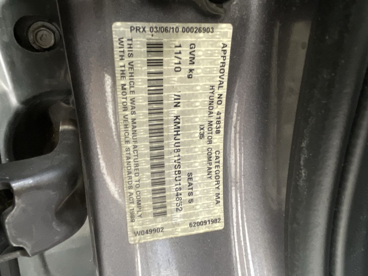 (SN:KMHJU81VSBU184852) (923454-3)