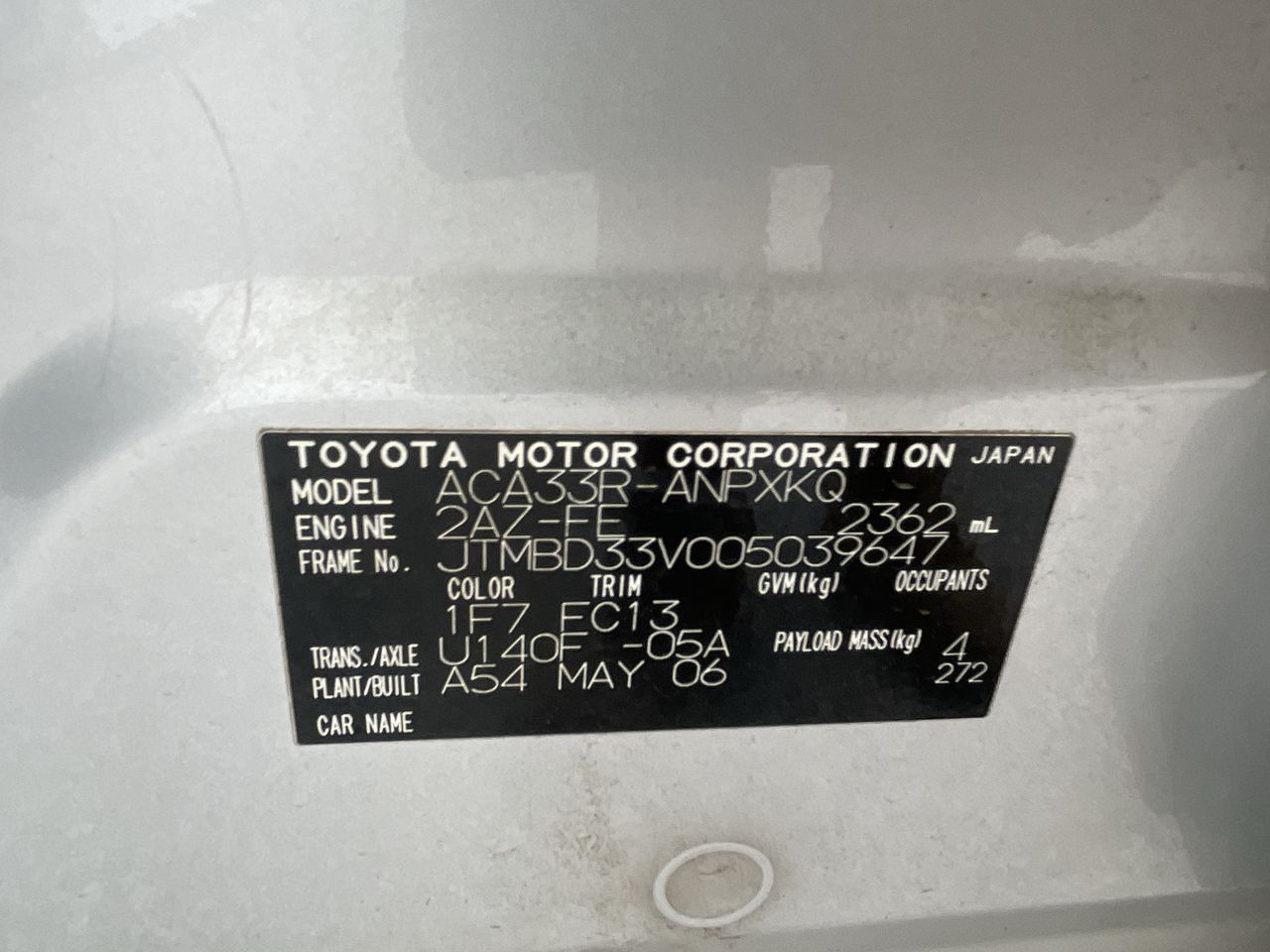 | Part of Sale | 2006 Toyota Rav 4 CV ACA33R Automatic Wagon | ||||||||||||||