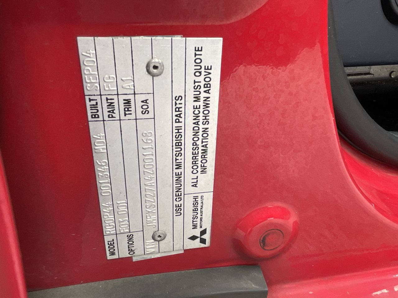 • VIN: JMFXSZ27A4Z001168