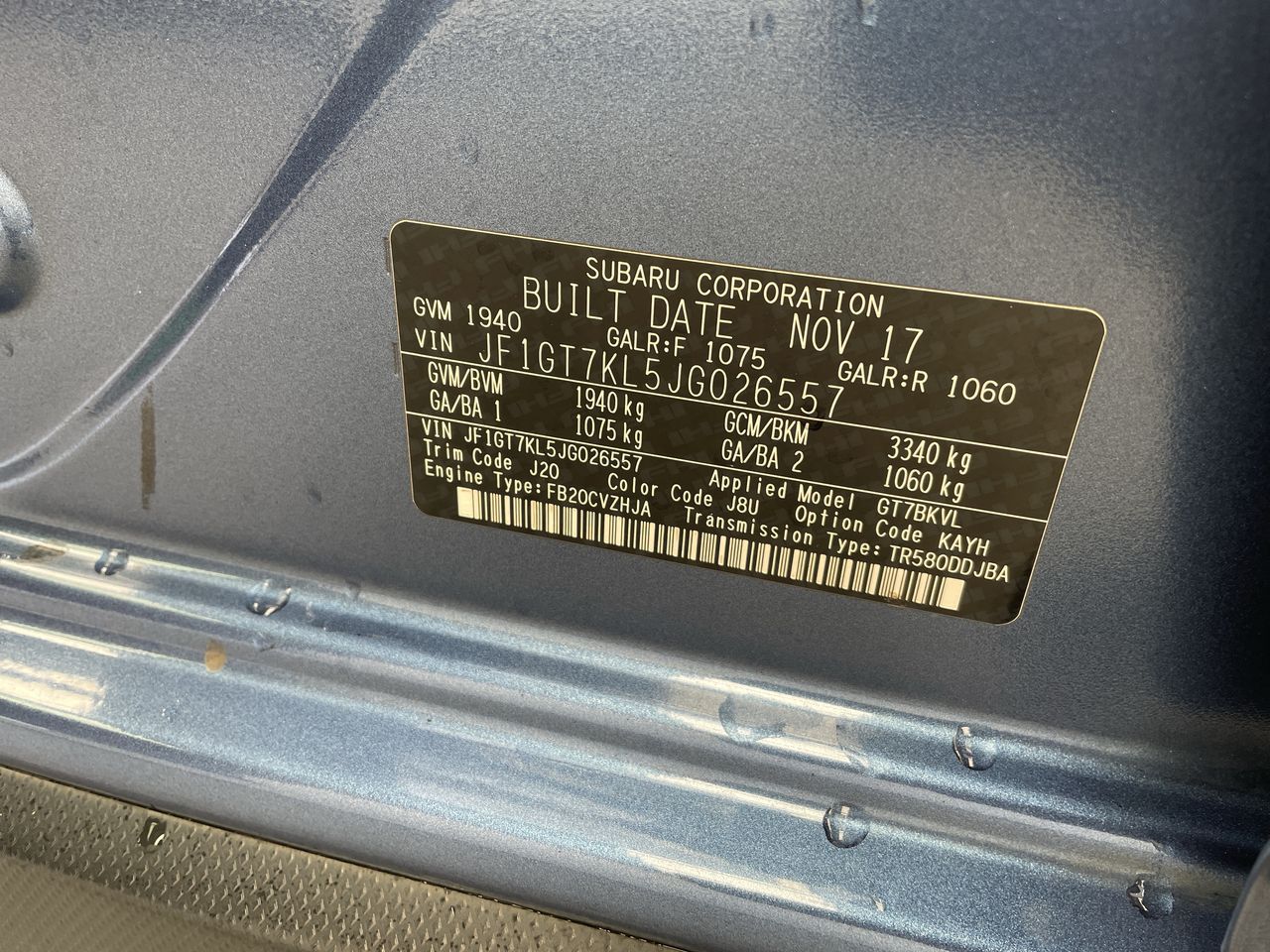 • VIN: JF1GT7KL5JG026557