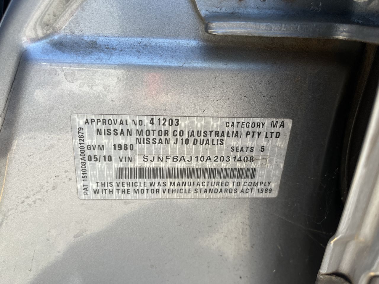| Part of Sale | 2010 Nissan Dualis ST J10 Manual Wagon | ||||||||||||||