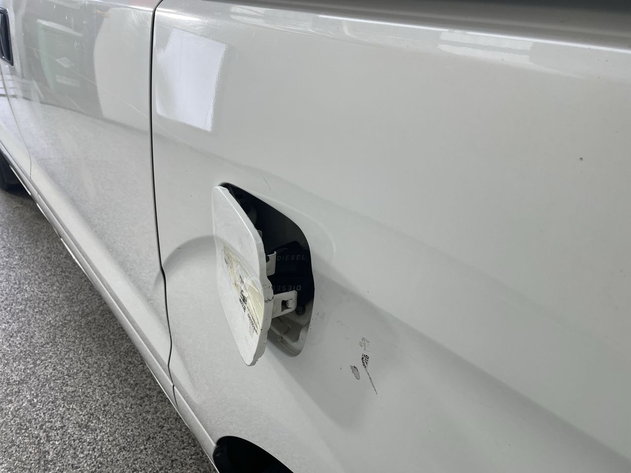 • Fuel flap broken, missing