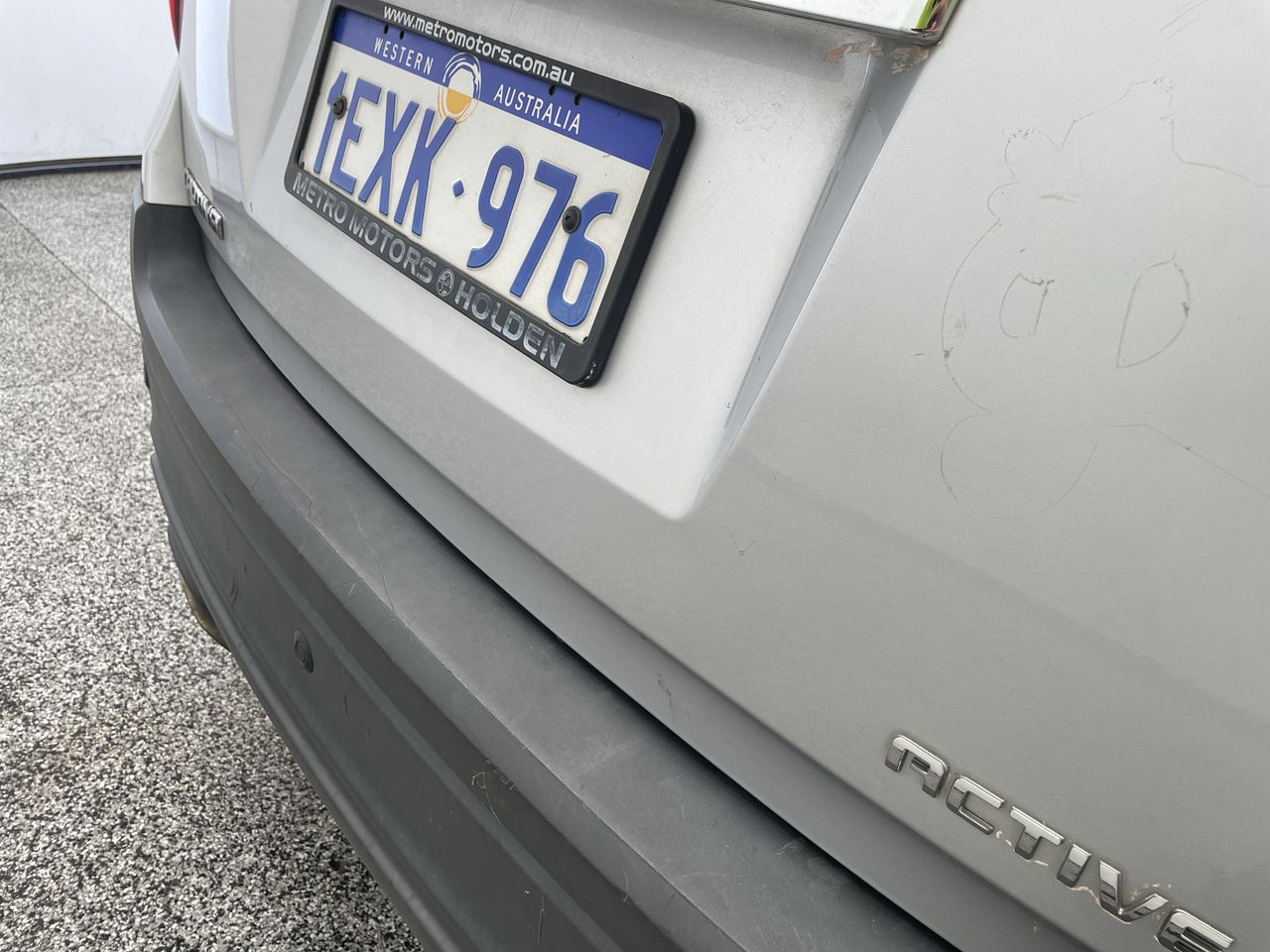 • Interior: Water present in vehicle, likely to form mold, Exterior: Tyre wire showing. Vehicle sounds like it backfires when revved. Driver door handle broken. paint fading on various parts