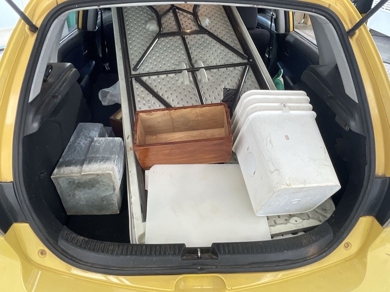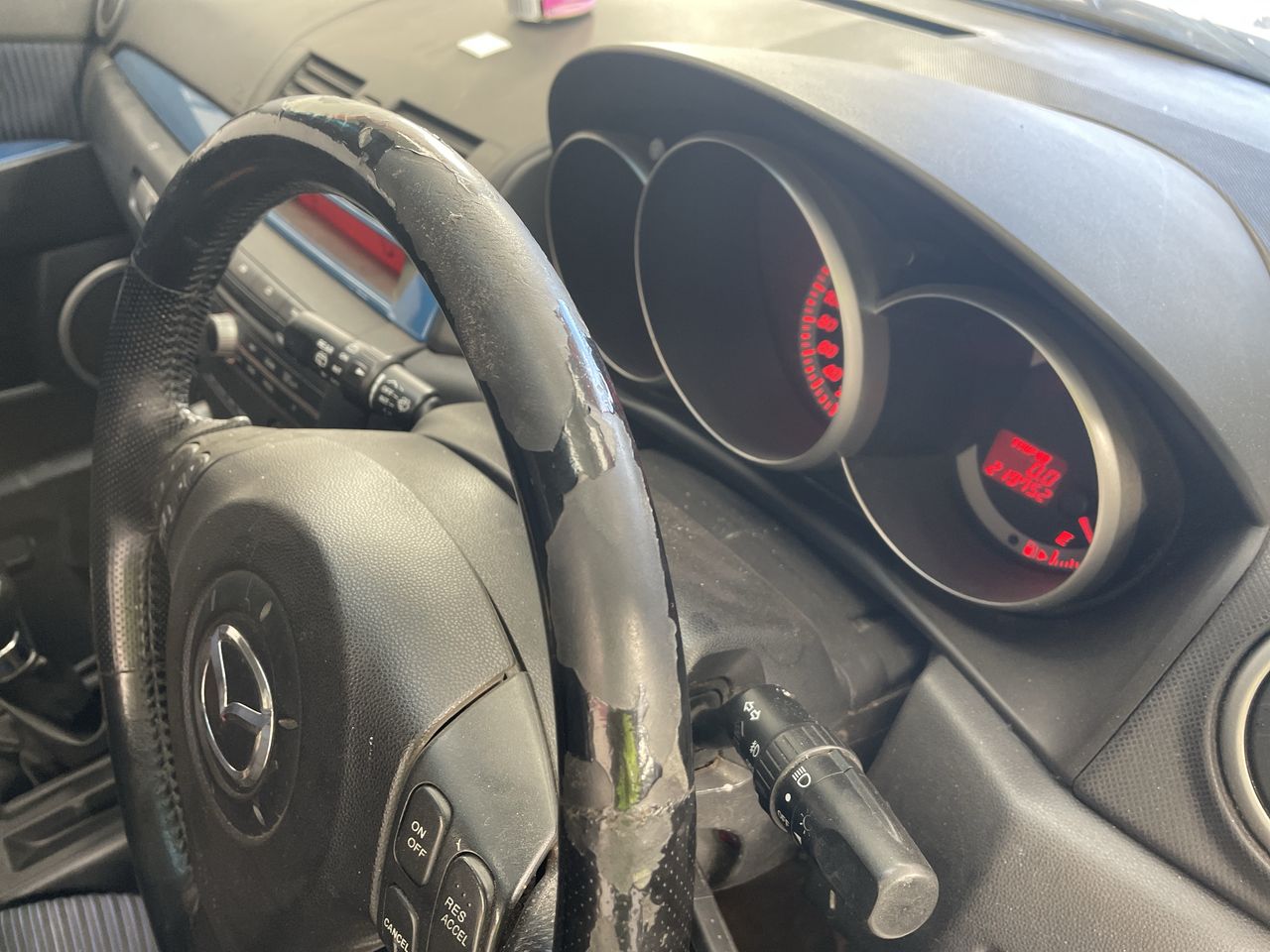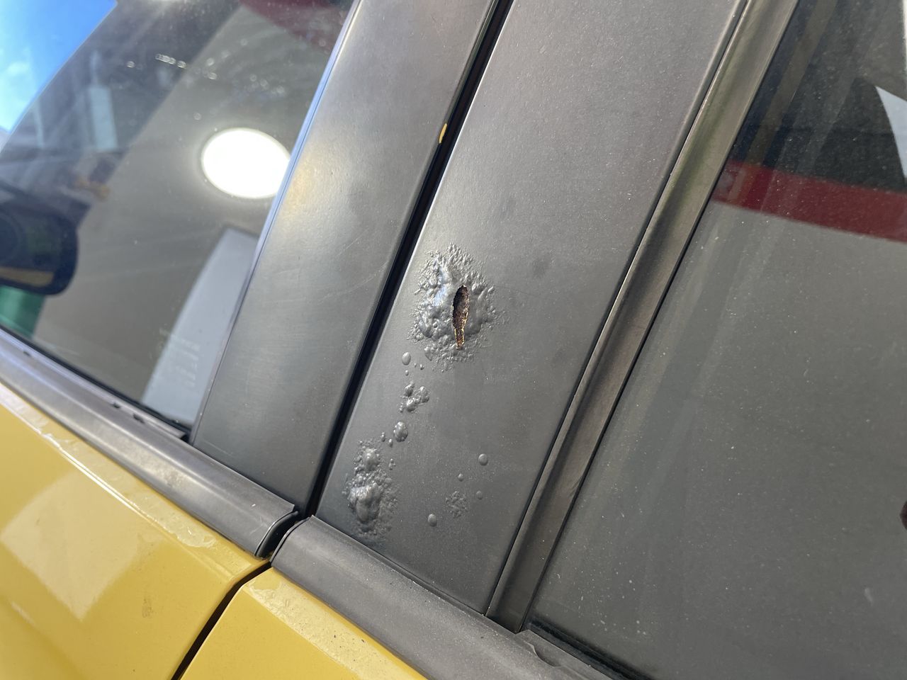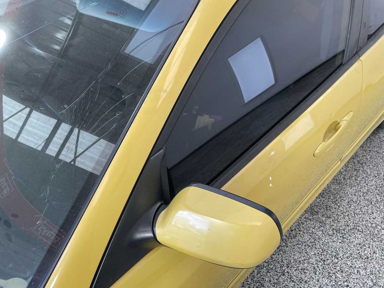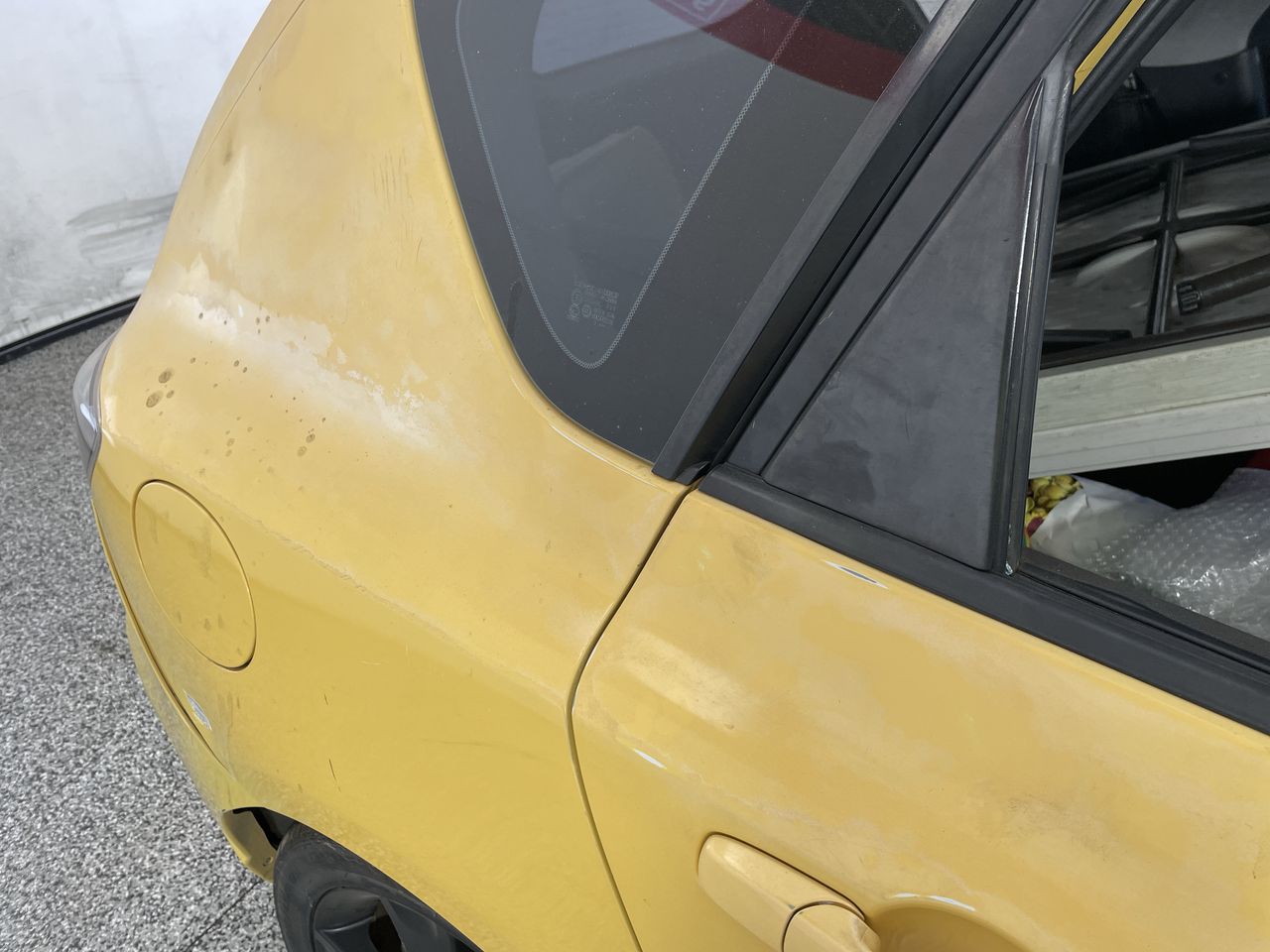 • Interior: Marks on roof lining, Steering wheel worn, Rear drivers side window missing, broken glass in car, general items inside vehicle, Exterior: Door pillar trim worn