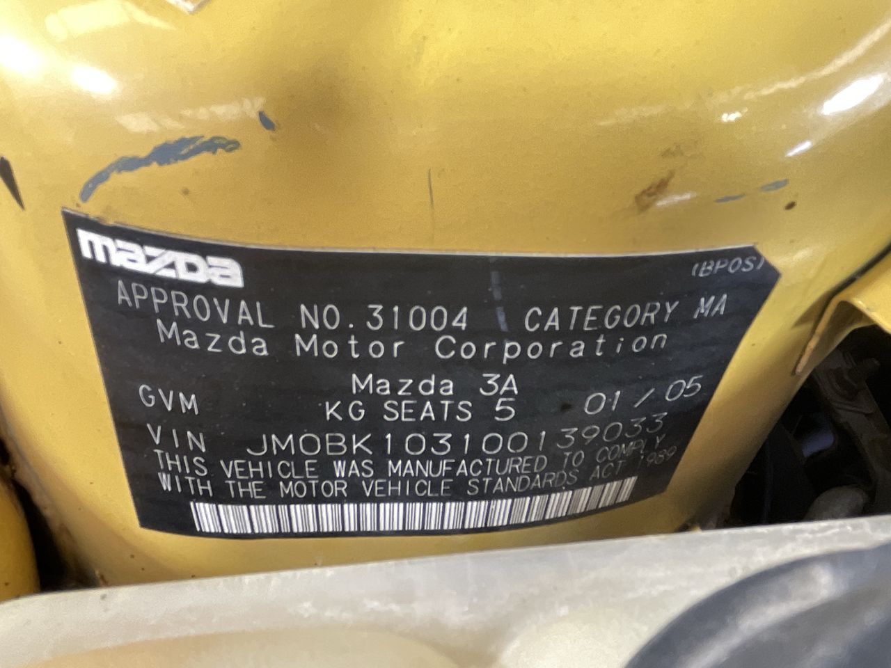 • VIN: JM0BK103100139033