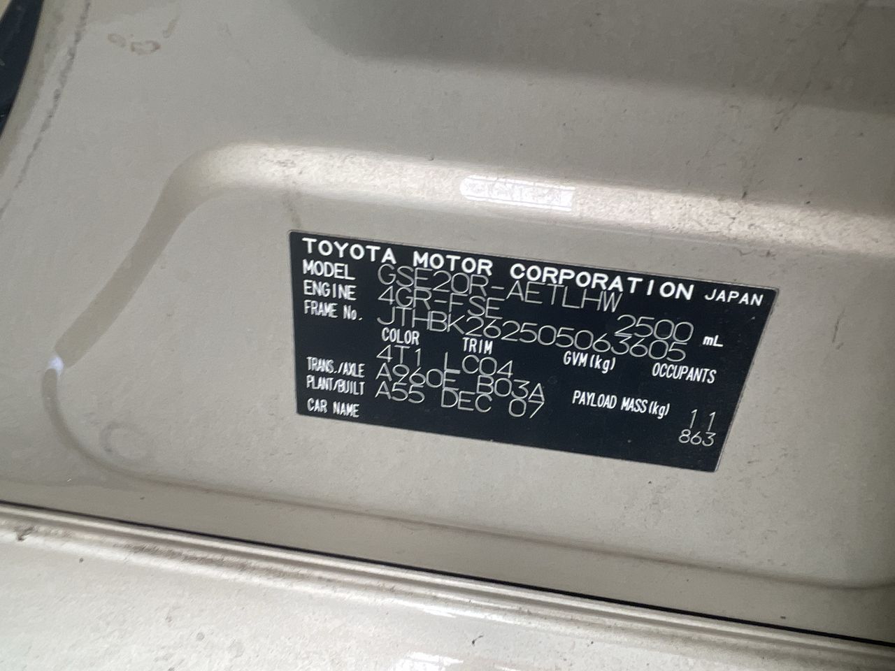 • VIN: JTHBK262505063605