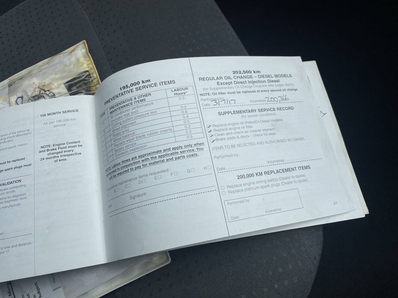 • Dents or marks on body consistent with age and kilometres.
