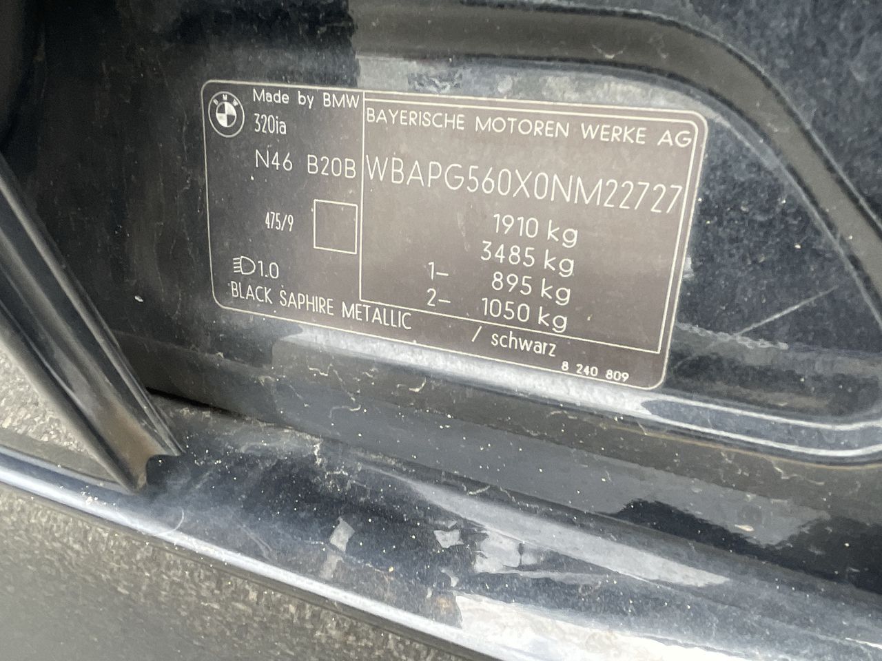 • VIN: WBAPG560X0NM22727