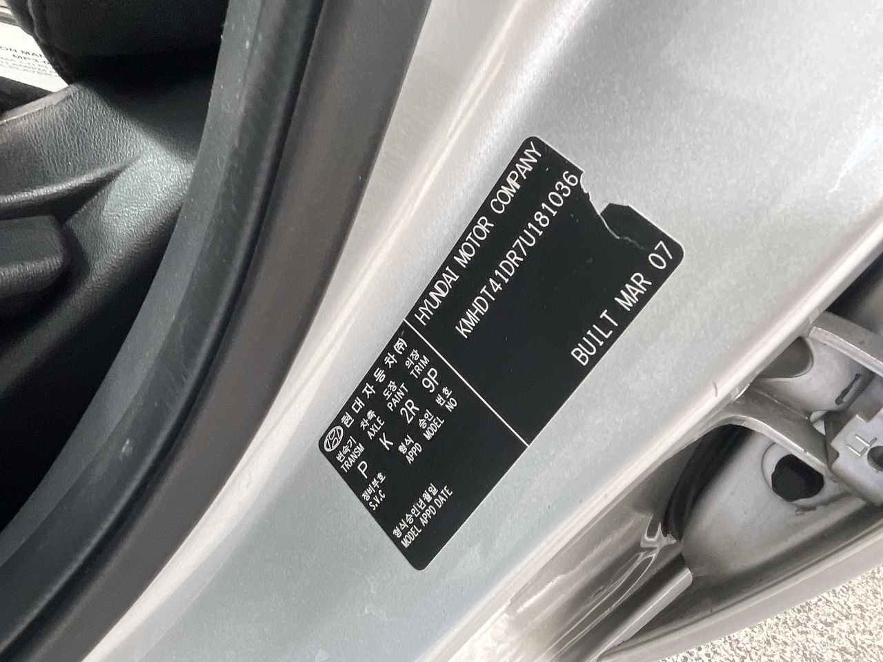 • VIN: KMHDT41DR7U181036