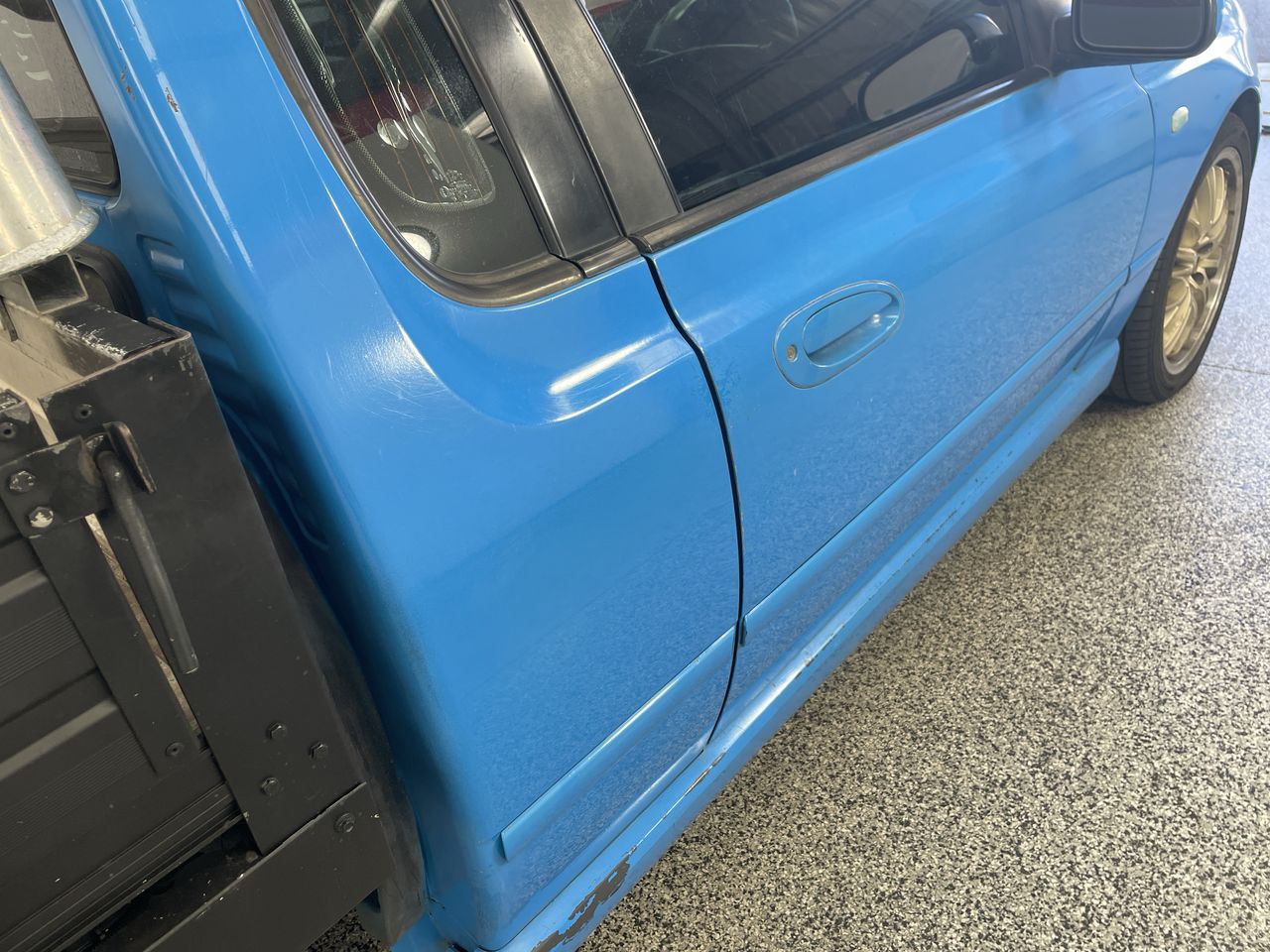 • Interior: Driver window held up with cardboard. Drivers seat very loose. Dash trim missing. Rear view mirror missing. Door handle cracked, Exterior: Very loud exhaust, Tint requires attention
