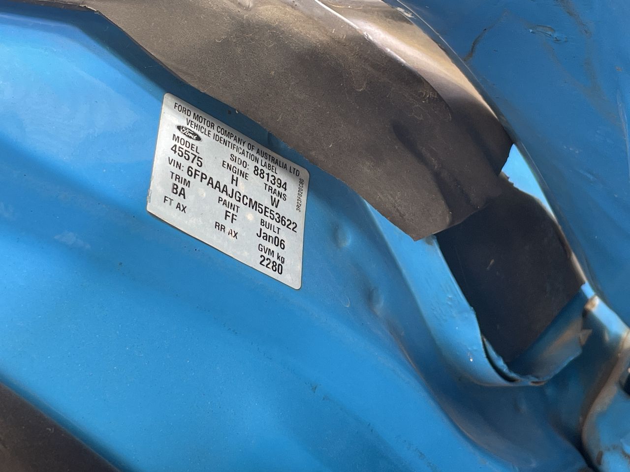 • VIN: 6FPAAAJGCM5E53622