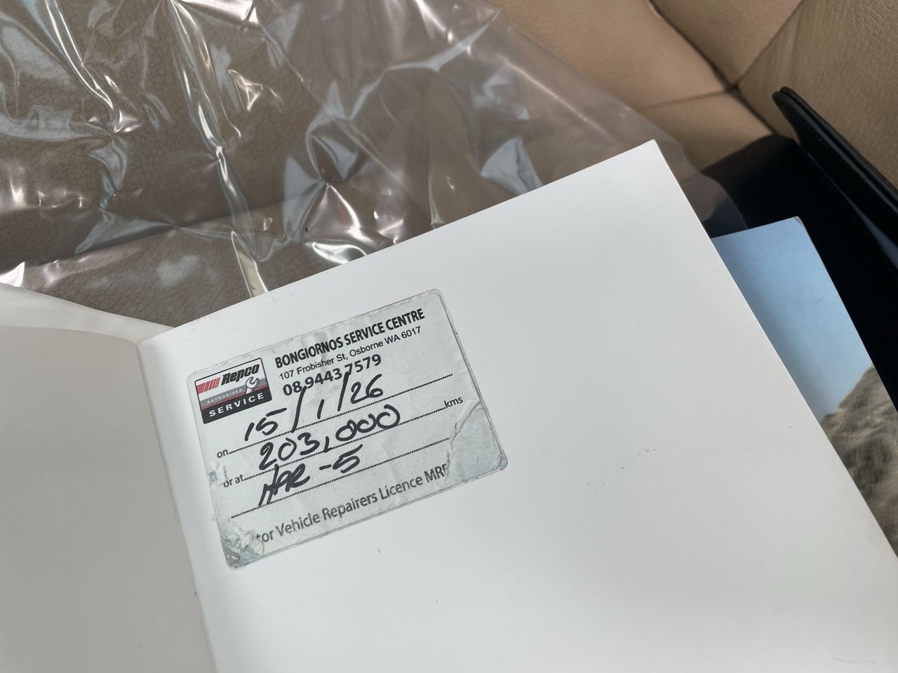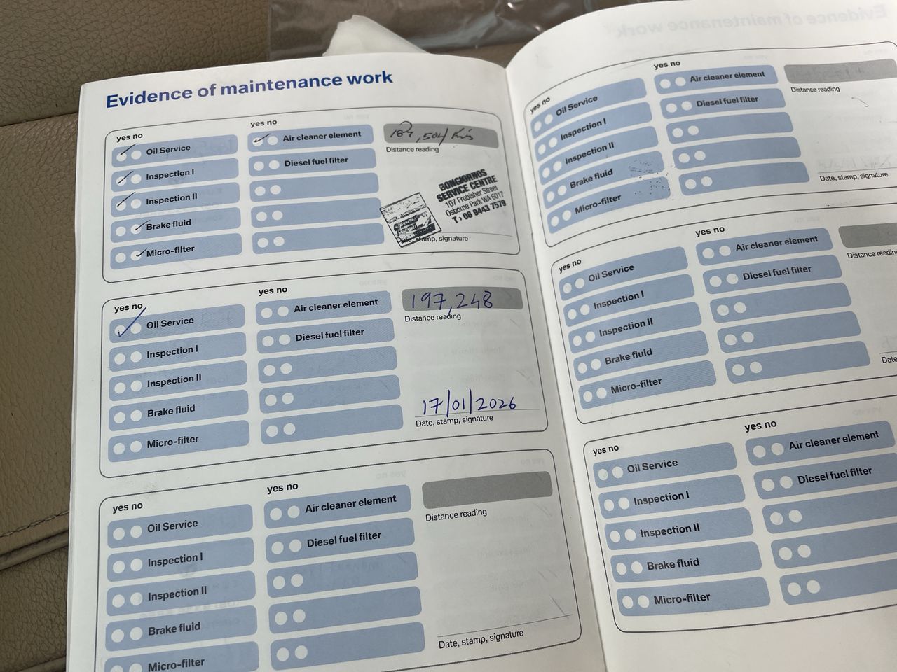 • Comment: Sticker in service book is advising next service due and not a record of a service completed.