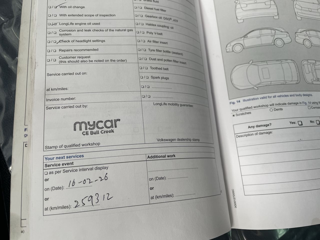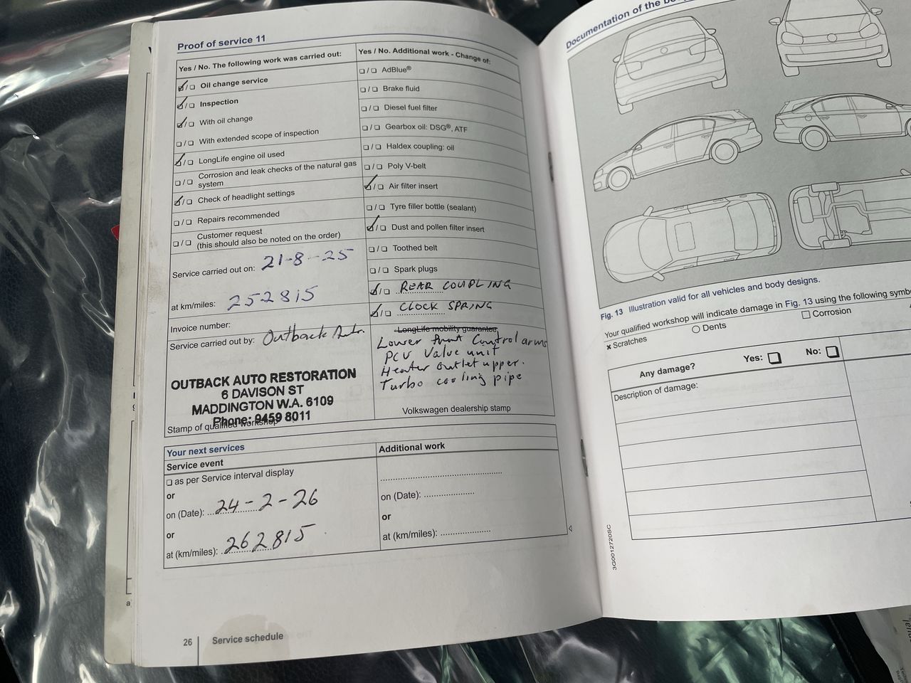 • Dents or marks on body consistent with age and kilometres.