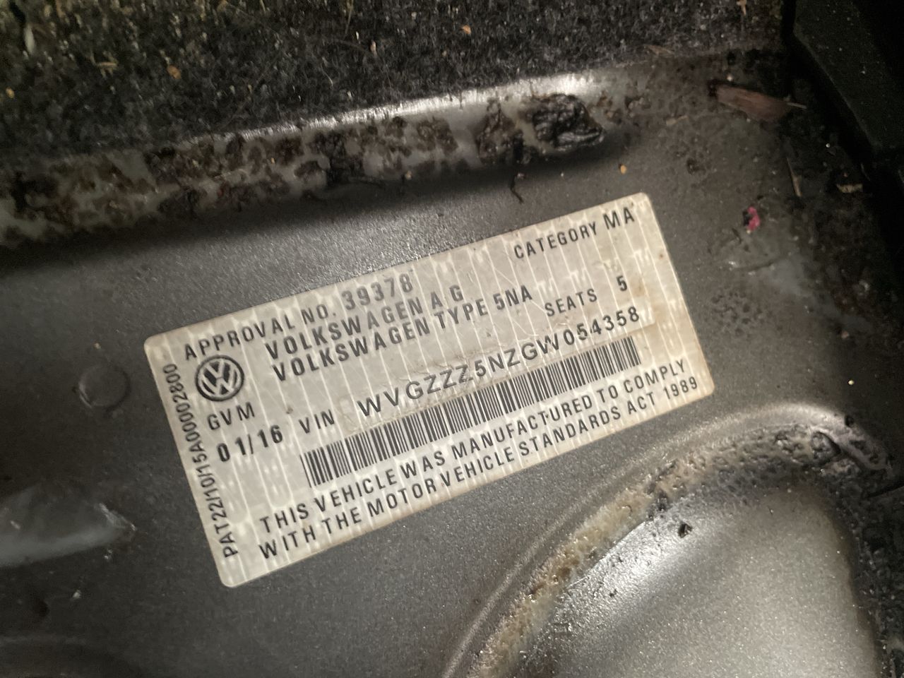 • VIN: WVGZZZ5NZGW054358