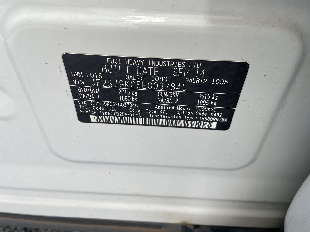(SN:JF2SJ9KC5EG037845) (915893-3337)