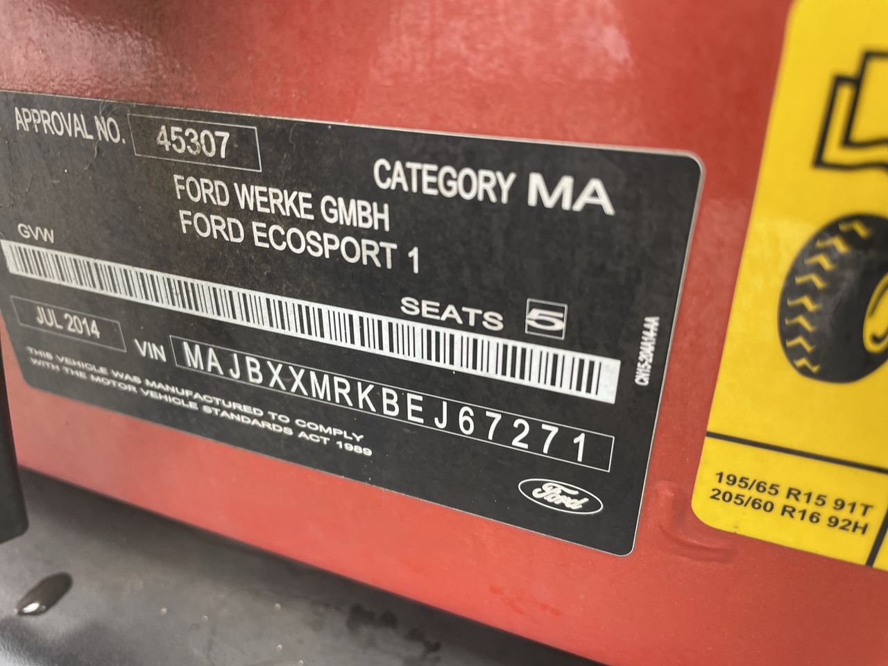 • VIN: MAJBXXMRKBEJ67271